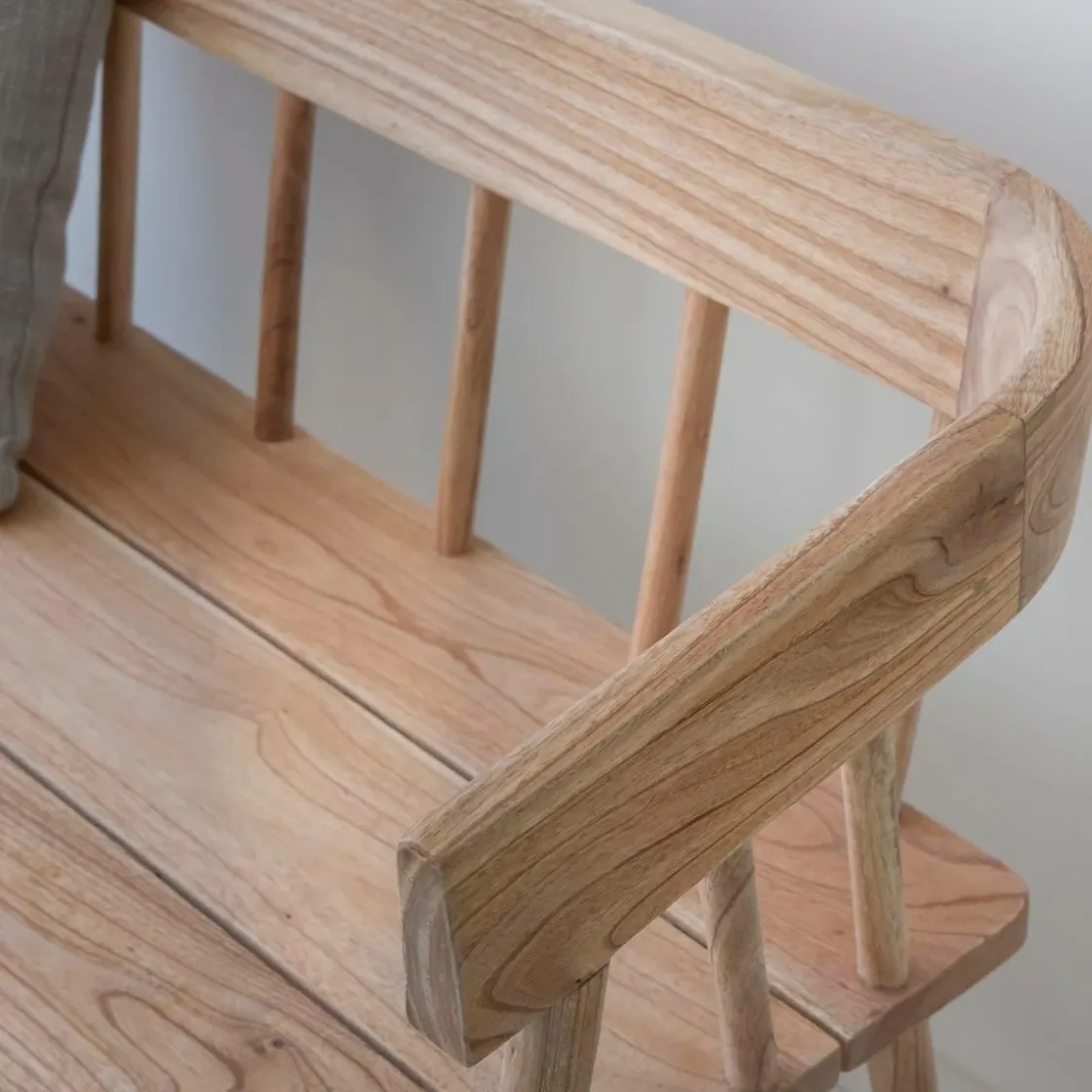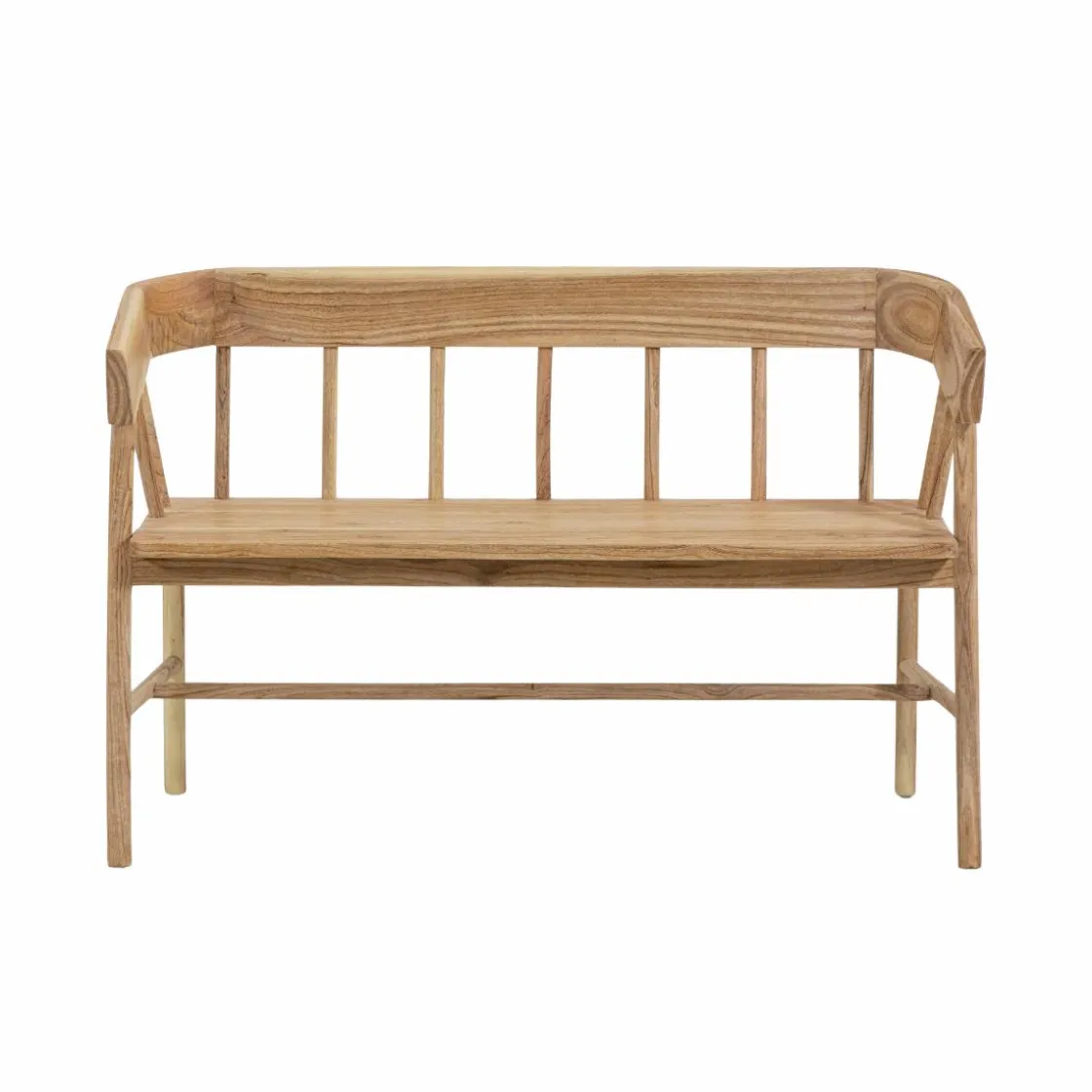 Ses accoudoirs intégrés et son assise spacieuse offrent un confort optimal, que ce soit autour d’une table de repas, dans une entrée ou en bout de lit. Sa finition brute met en valeur le veinage du teck, lui donnant un charme naturel unique.