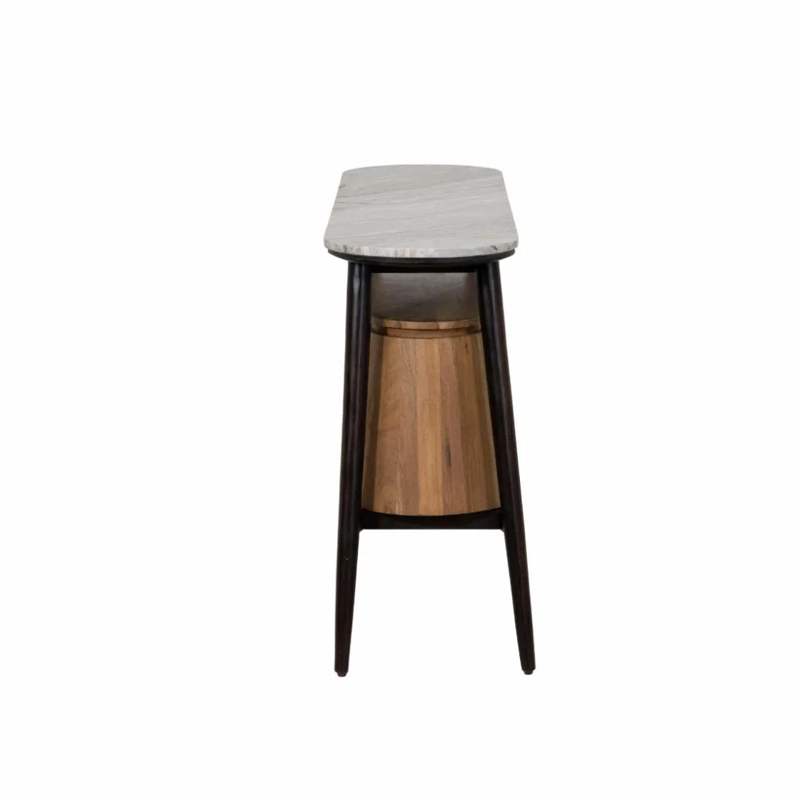 Doté de rangements discrets derrière des portes en façade courbe, ce buffet offre une capacité généreuse pour organiser votre vaisselle, linge de maison ou accessoires du quotidien. Le plateau en marbre, en plus d’être résistant, ajoute une note précieuse à ce meuble qui trouvera sa place aussi bien dans une salle à manger que dans une entrée ou un salon raffiné.