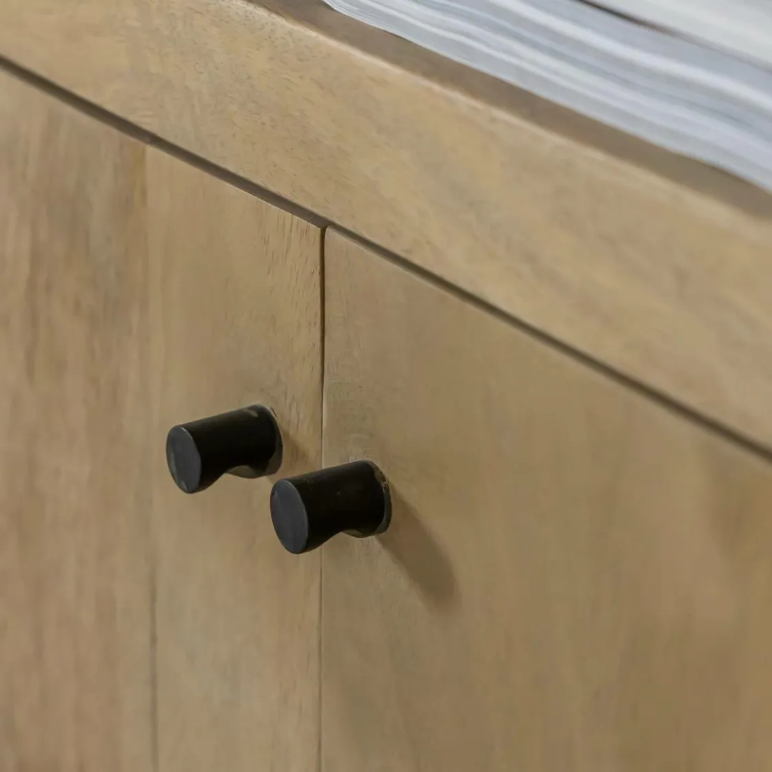 Pratique et fonctionnel, il est doté de quatre portes offrant un large espace de rangement pour la vaisselle, le linge de maison ou divers objets du quotidien. Sa conception en bois de manguier garantit robustesse et durabilité, faisant de ce buffet un meuble à la fois esthétique et fiable.