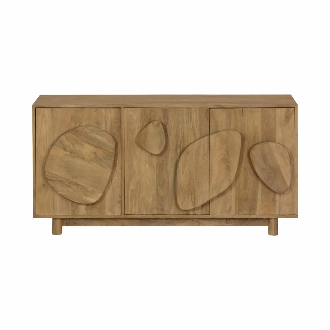 Affirmez votre goût pour le design avec ce buffet en bois de manguier de la collection Aaron. Ce meuble au style sculptural se distingue par ses façades ornées de formes organiques en relief, qui apportent une touche artistique et contemporaine à votre intérieur. Le bois de manguier, avec ses nuances naturelles et chaleureuses, sublime l’ensemble par son aspect brut et authentique.