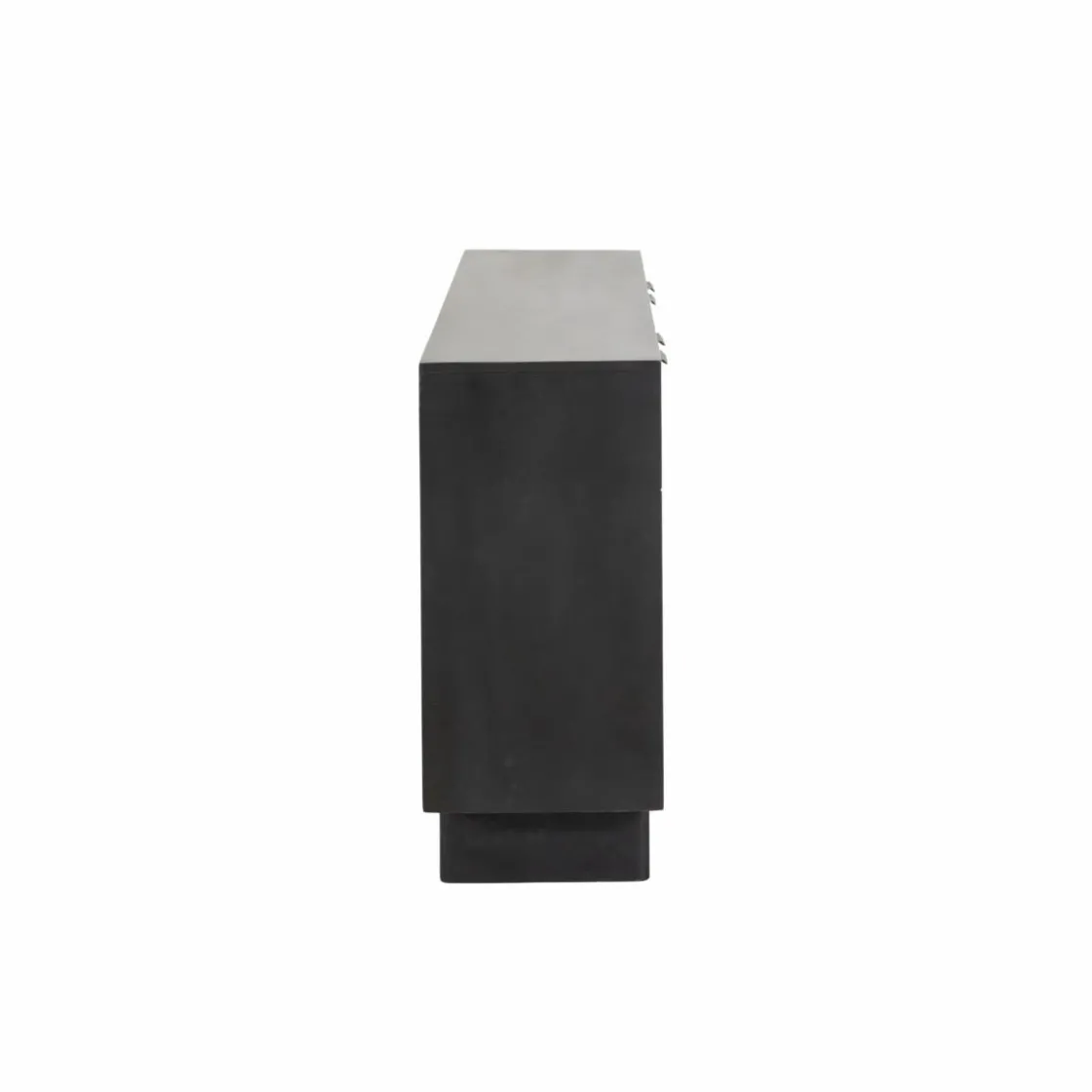 Fabriqué intégralement en bois de manguier massif, il combine robustesse, raffinement et caractère. Le veinage naturel du bois est sublimé par cette finition texturée qui évoque les ondulations de l’eau ou les motifs organiques du monde minéral. Derrière ses quatre portes battantes, il offre un grand volume de rangement parfaitement adapté à une salle à manger, un salon ou une entrée.