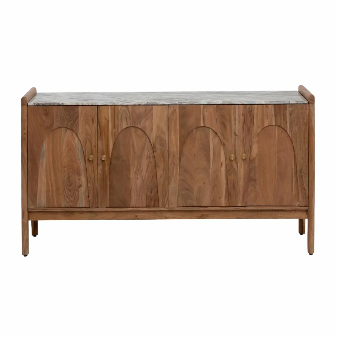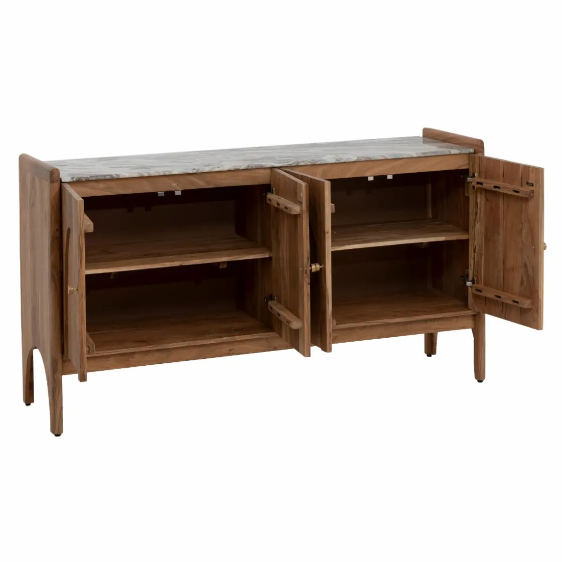 Le buffet Calix offre un mariage élégant entre fonctionnalité et esthétique contemporaine. Son plateau en marbre apporte une touche de luxe, tandis que le bois d’acacia confère chaleur et robustesse à l’ensemble.