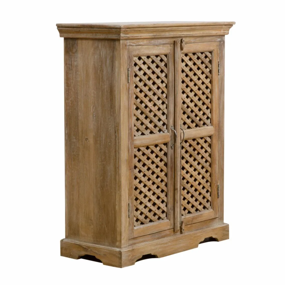 Ce buffet en bois massif se démarque grâce à ses dimensions optimales, plus qu’un petit buffet traditionnel, il saura satisfaire les petits espaces en proposant un meuble tendance avec différentes capacité de rangement. Les traits fins de son bois de manguier amèneront de la luminosité dans votre décoration. Coup de coeur assuré pour sa patine blanchie qui illumine l’ensemble du meuble. Ses deux portes ajourées apportent de la modernité et s’inscrivent dans les tendances actuelles.