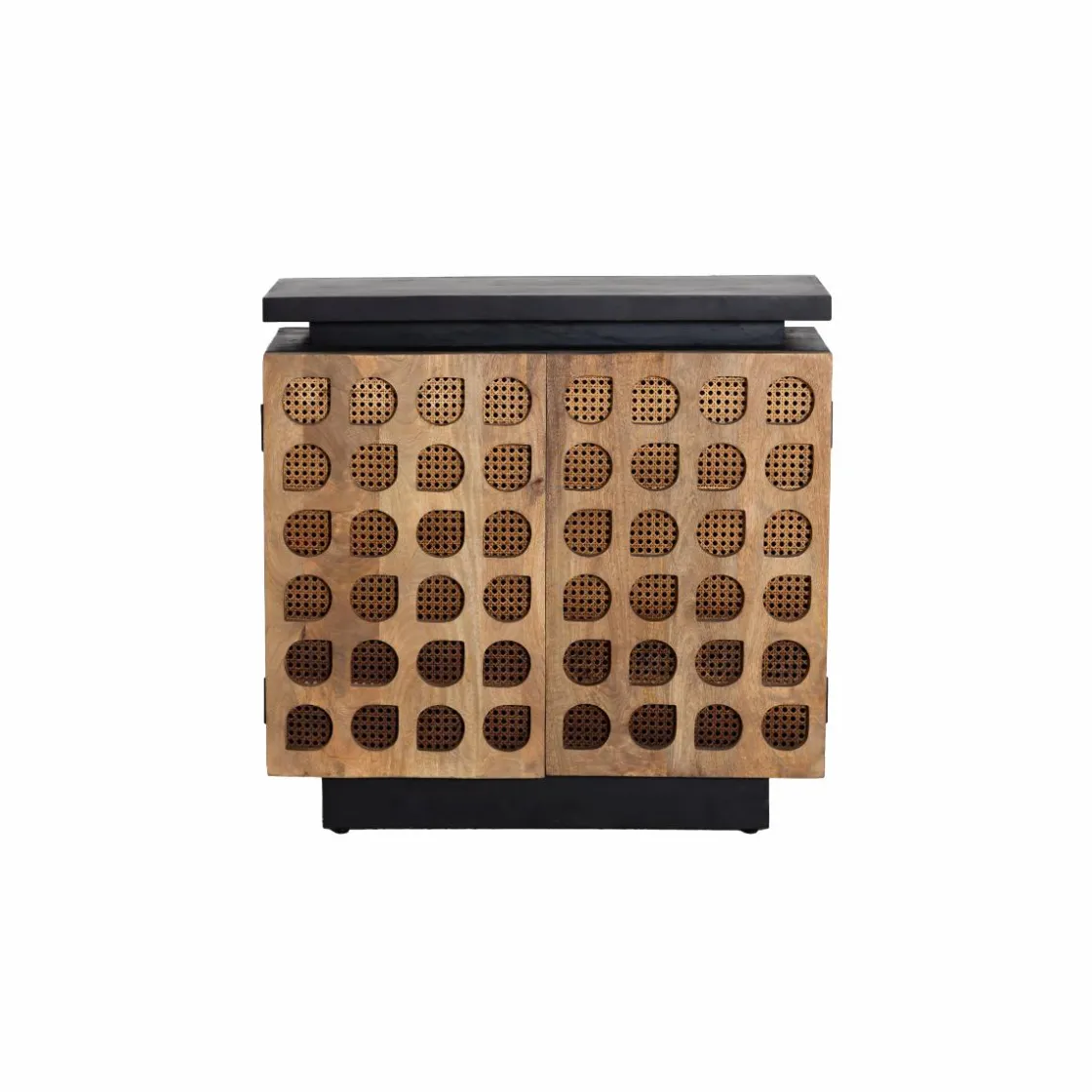 Côté conception : On est sur un design complétement singulier. C’est une fabrication en manguier massif qui allie deux tons ; le bois naturel et le bois peint en noir. On ne peut que souligner la beauté du cannage qui met en valeur les « gouttes » sculptées dans le bois. Une œuvre, n’est-ce pas ?