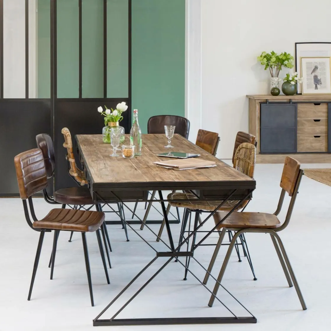 Amateur d’authenticité, ce lot de deux chaises est fait pour vous ! Craquez pour ces chaises de caractère qui sauront apporter un esprit vintage à votre décoration ! Revisitées à la perfection, vous allez adorer l’aspect brut de leur bois et leur piétement en métal.