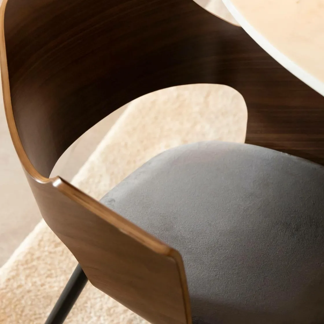 Apportez une touche de modernité organique à votre intérieur avec le lot de deux chaises Florence. Leur coque enveloppante en triplex plaqué noyer séduit par ses courbes douces et son aspect chaleureux, tandis que l’assise en velours offre un confort moelleux et un contraste élégant.