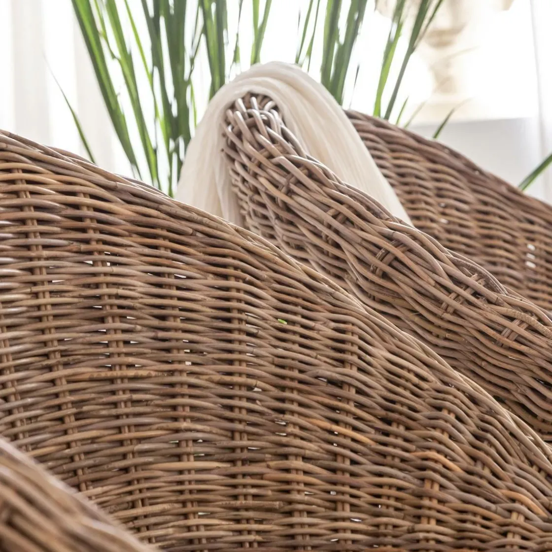 Cette belle chaise en rotin, avec sa base métallique élégante, présente une forme arrondie et un style bohème. Avec une hauteur de 90 cm, une largeur de 74 cm et une profondeur de 76 cm, cette pièce est à la fois élégante et confortable, tout en ajoutant une dimension et une classe à n’importe quel espace.