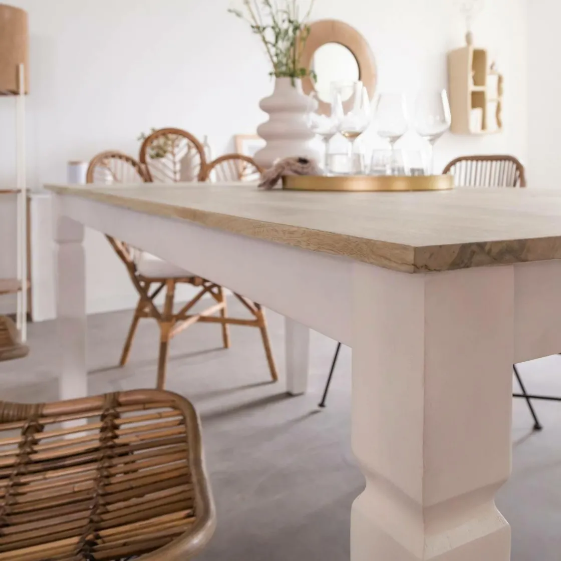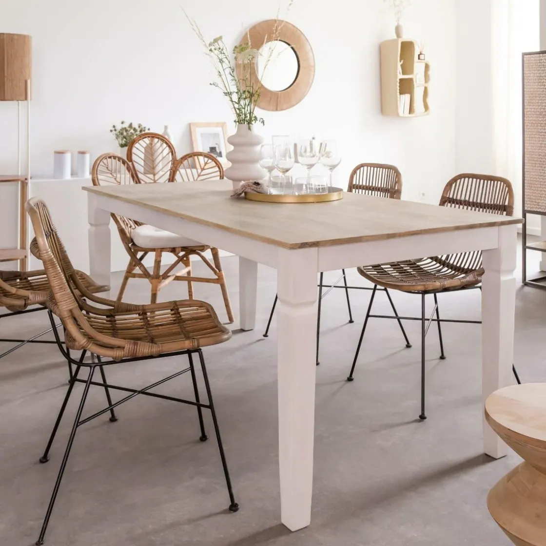 Fabriquée en bois de manguier massif et dotée de pieds blancs, elle deviendra à coup sûr un élément intemporel de votre décoration intérieure. Son design élégant s’harmonise parfaitement avec les styles modernes ou vintage pour un look chic et tendance. Avec une hauteur de 78 cm et une largeur de 180 cm, cette pièce est suffisamment spacieuse pour accueillir des invités, savourer des repas et créer une atmosphère inoubliable.