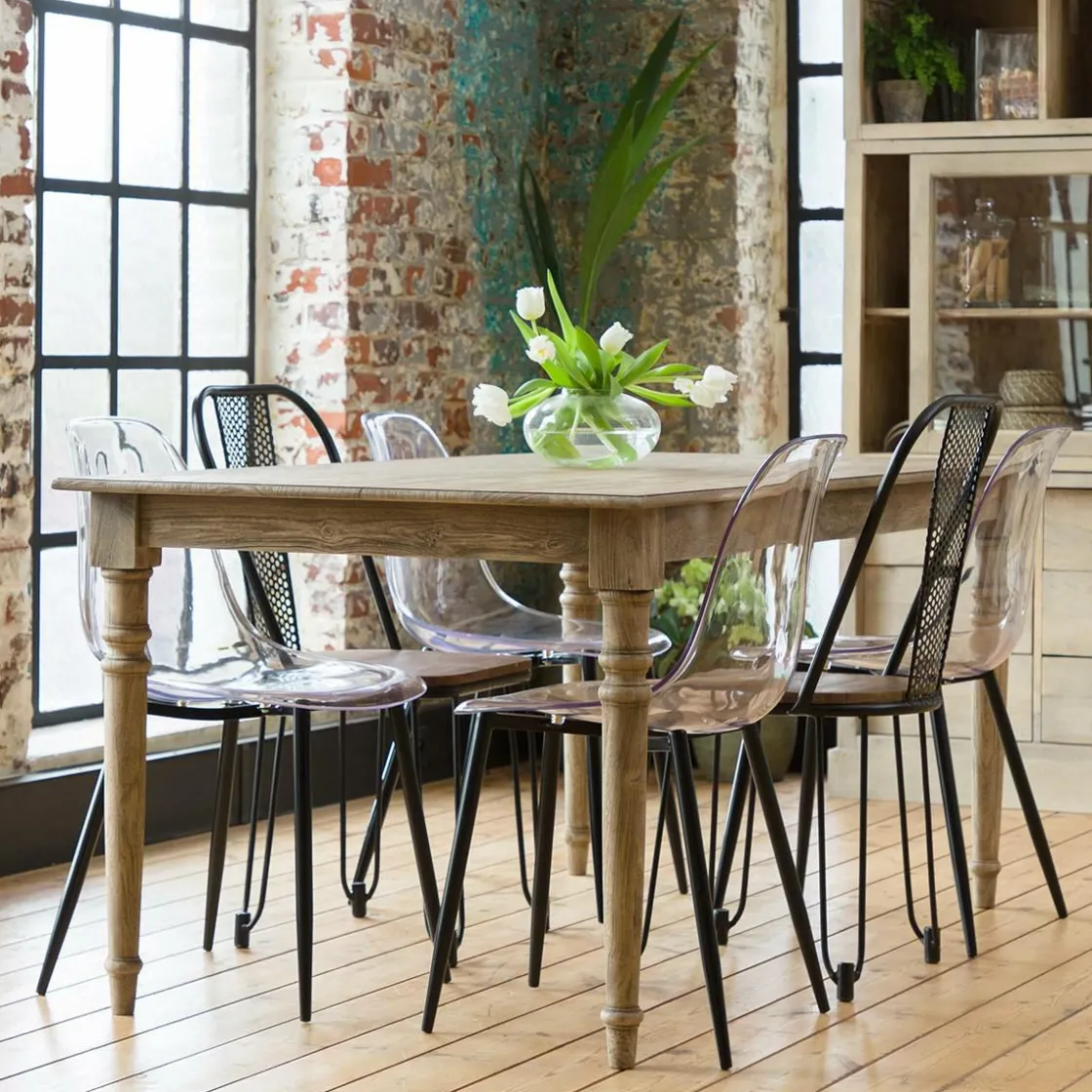 Les nuances claires et lumineuses qui se dégagent du bois de cette table à manger en bois massif et cet aspect brut amènent une touche de caractère à l’ensemble du meuble. Son design rustique et raffiné à la fois trouvera facilement sa place dans votre intérieur.