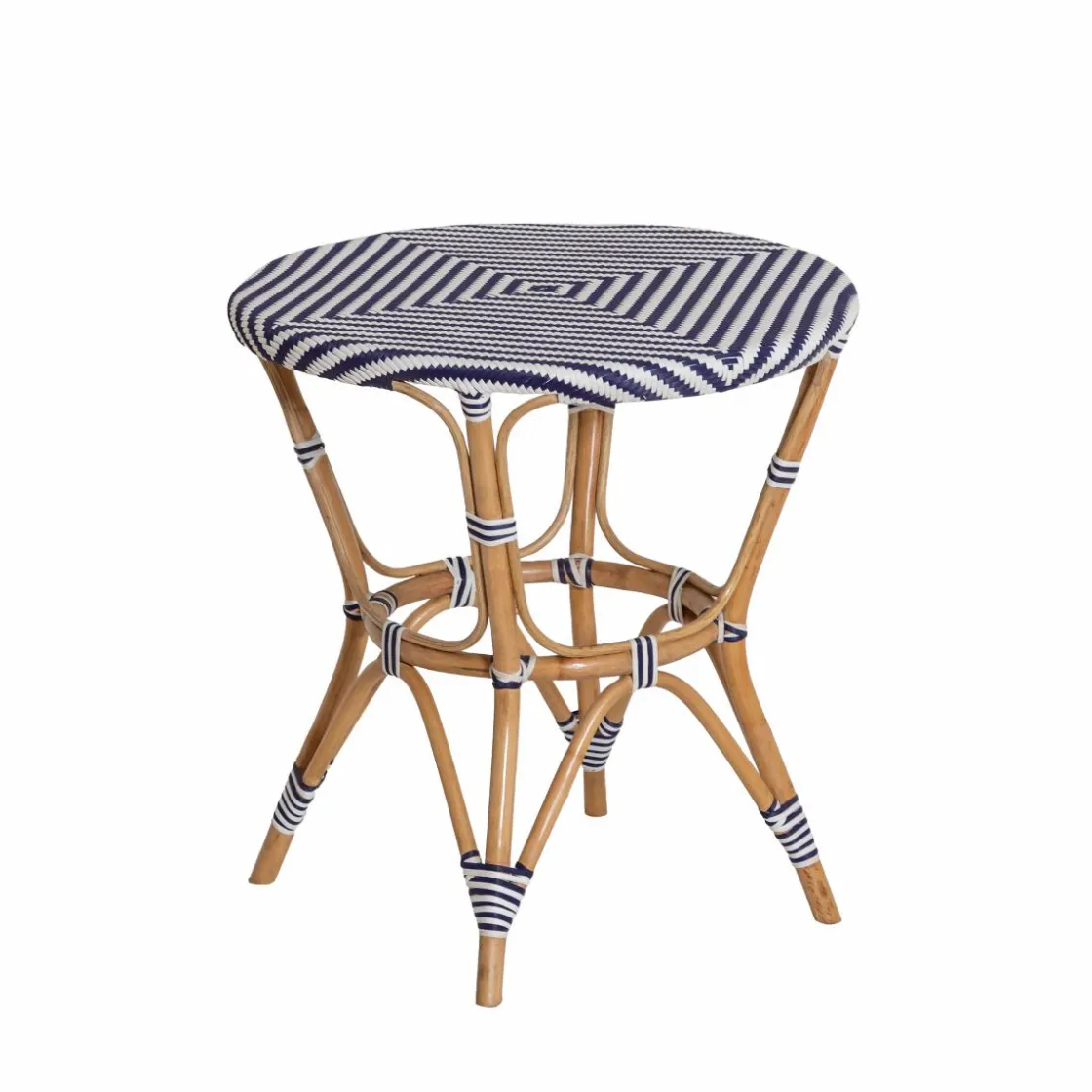 Si vous êtes à la recherche d’un objet intemporel pour relier votre espace de vie, la table bistro Elynne est la solution idéale ! Avec son décor d’inspiration vintage, sa structure classique en rotin et son plateau en plastique tressé bleu et blanc, vous aurez l’impression d’avoir remonté le temps.