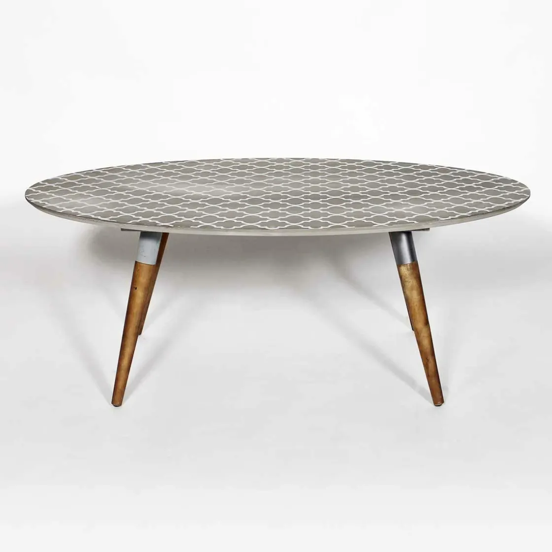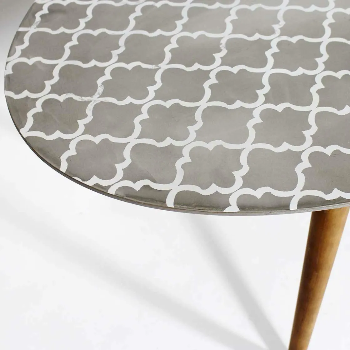 A l’instar d’une table basse bois massif, vous allez apprécier sa robustesse. En effet, sa patine effet béton lui offre stabilité et résistance. Ses pieds compas en bois ont ce côté « rétro » et dynamique qui fait tout le charme du meuble. Au design scandinave, cette table s’adaptera très bien dans un univers moderne et original. Ses motifs blancs sont peints sur une patine effet béton.