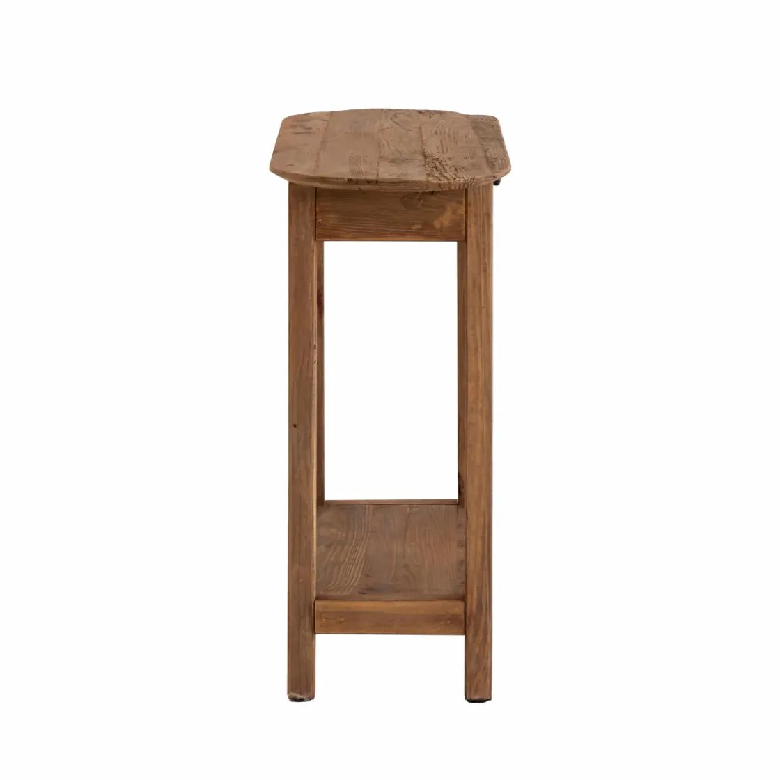 Transformez votre espace avec la console en bois de pin recyclé Blaise. Avec une profondeur de 34 cm, une largeur de 94 cm et une hauteur de 76 cm, cette console allie parfaitement authenticité et fonctionnalité. Le tiroir intégré offre un espace de rangement pratique pour vos petits objets du quotidien, tout en ajoutant une touche de charme rustique.