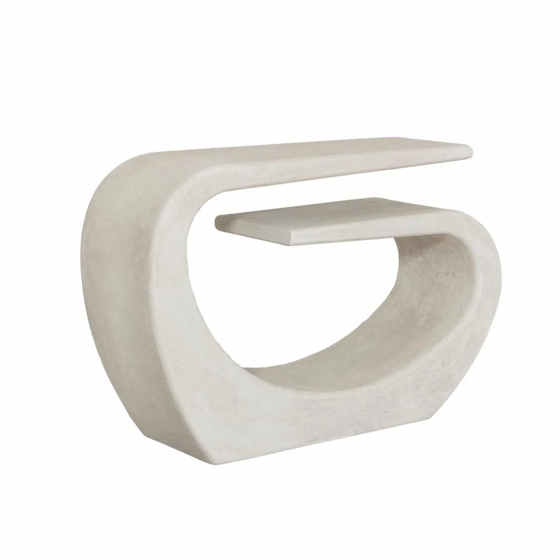 Cette console sculpturale de la collection Danaé séduit par sa forme audacieuse et ultra contemporaine. Son design enroulé en un G stylisé donne une impression de mouvement figé, presque architecturale. Fabriquée en MDF avec une finition blanche mate, elle conjugue légèreté visuelle et stabilité.