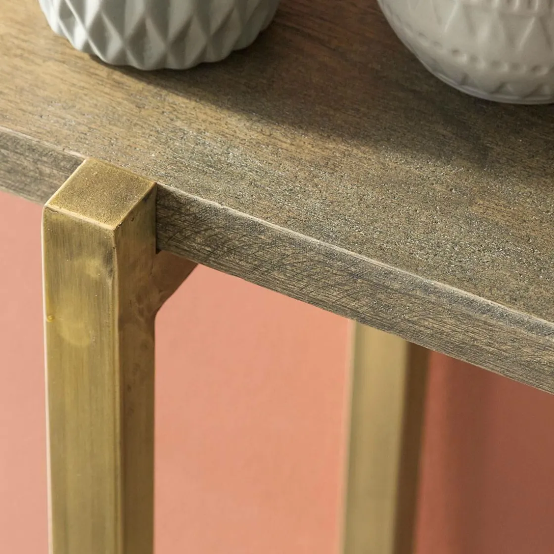 Cette console industrielle dispose d’une conception très tendance et d’un design très linéaire. Le détail que l’on apprécie le plus est le piètement de couleur dorée qui apporte une touche vintage à ce meuble. De plus, on remarque son plateau en manguier qui apportera une touche naturelle dans la pièce qui accueillera cet objet de déco.