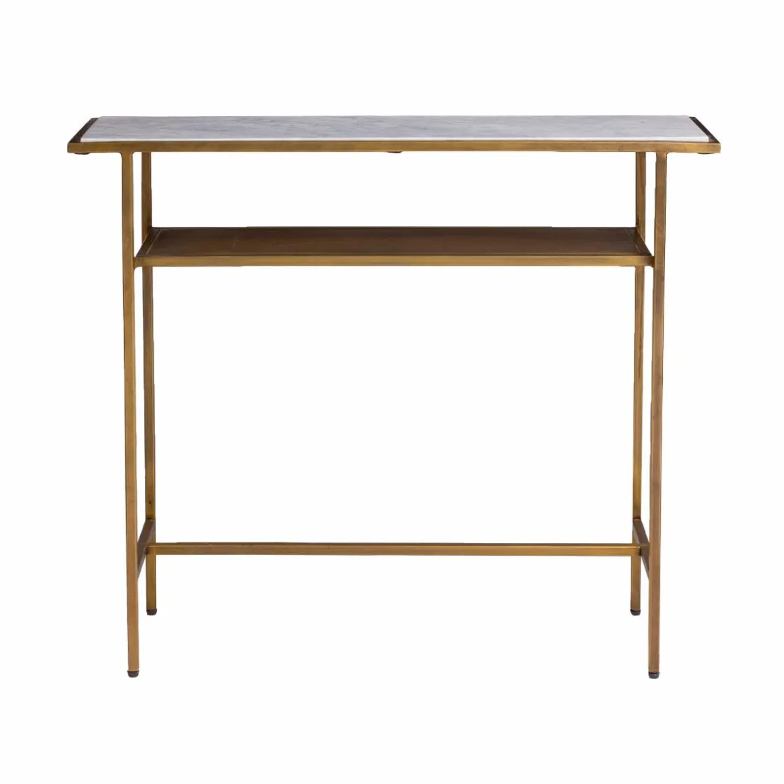 Ajoutez une touche de luxe à votre salon avec la console Timéo ! Avec ses cadres en métal doré et son plateau en marbre blanc poli, cette pièce contemporaine est aussi élégante que sophistiquée.