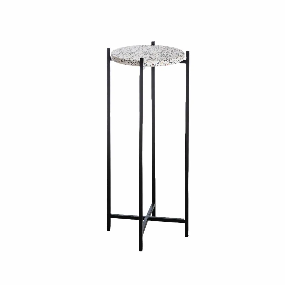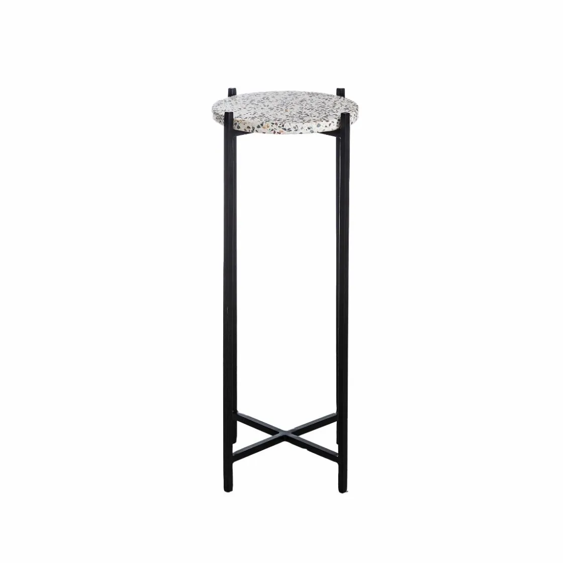 L’idée d’associer le terrazzo et le métal est un pari qui se révèle très réussi ! A noter également que le design du piétement apporte beaucoup de style à cette sellette.