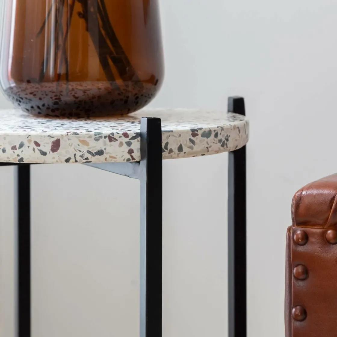 À savoir : Le Terrazzo est un revêtement unique composé de fragments de pierres naturelles et de marbre coloré mélangés avec du ciment. Cette combinaison lui confère un aspect poreux et quelques aspérités. Le terrazzo est une création artisanale unique, la présence de fragments peut donc varier.