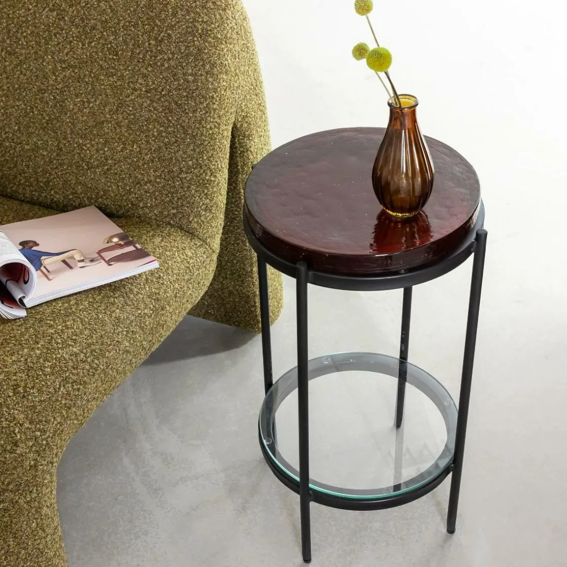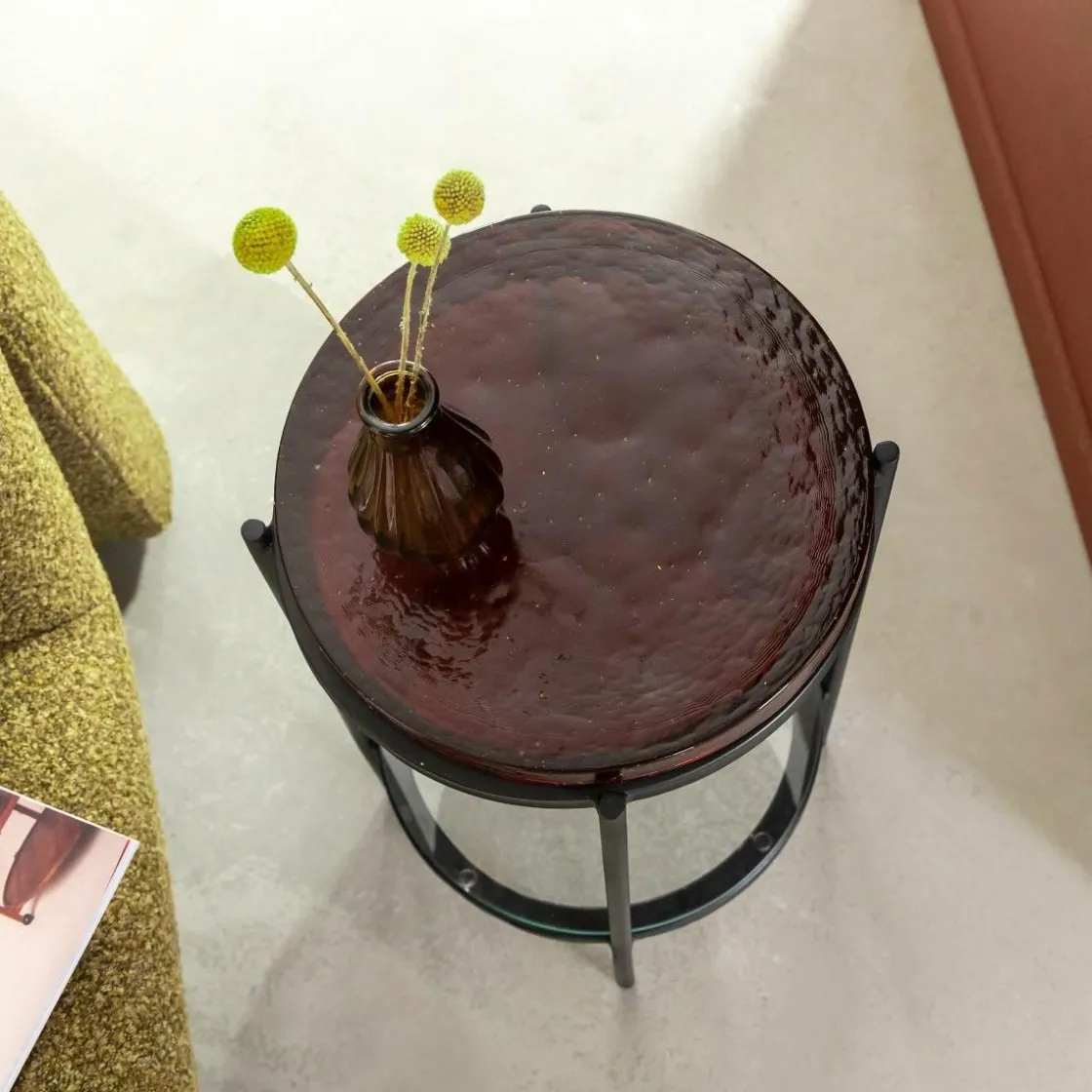 Avec son style vintage frappant et l’association audacieuse d’une structure en métal noir et d’un plateau rond en verre rouge, cette table d’appoint ne manquera pas de faire impression. Vous aimerez la façon dont la largeur de 32 cm et la hauteur de 55 cm s’intègrent parfaitement à la disposition de la pièce, sans prendre trop de place. Son design épuré ajoute une touche de sophistication et de classe qui rehaussera instantanément l’atmosphère de votre maison.