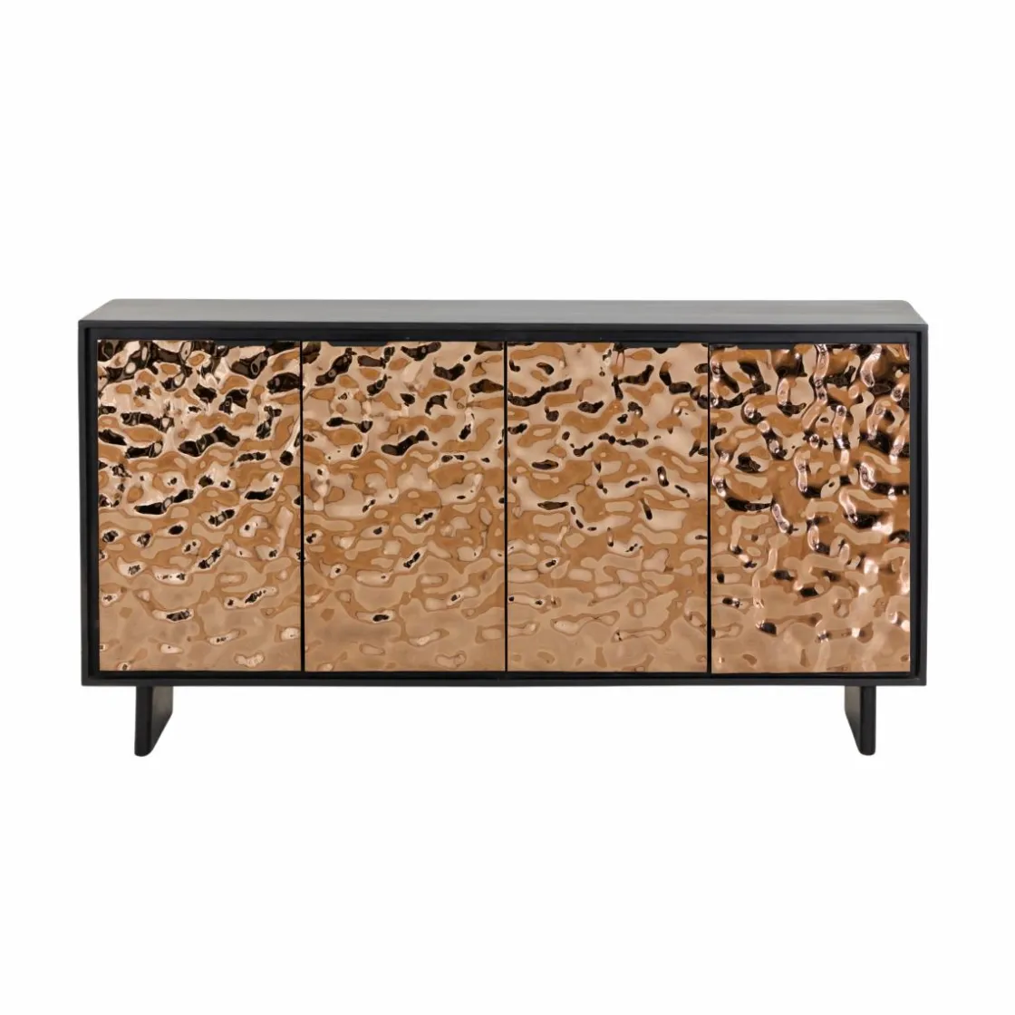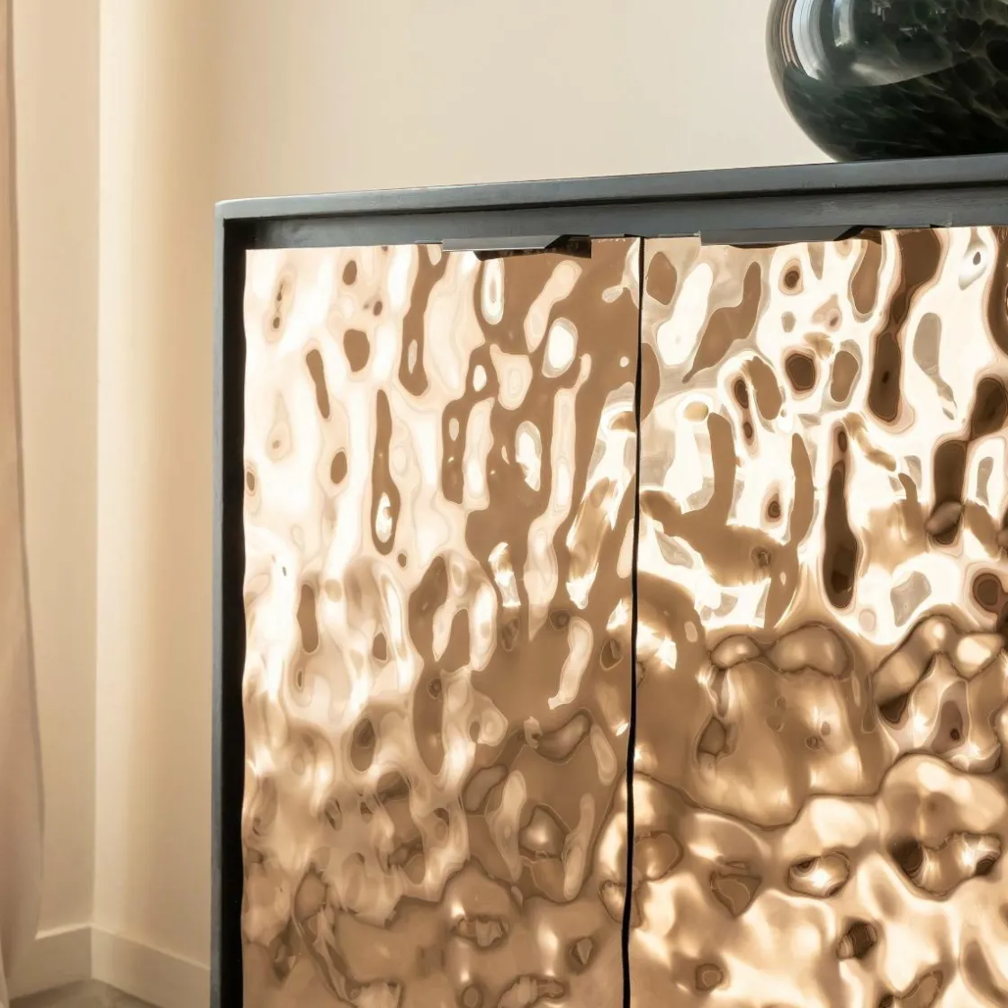 Installé sur un socle noir sobre, ce buffet semble presque flotter, renforçant son élégance sculpturale. Véritable pièce maîtresse, il séduira les amateurs de mobilier hautement décoratif, entre artisanat et design contemporain.