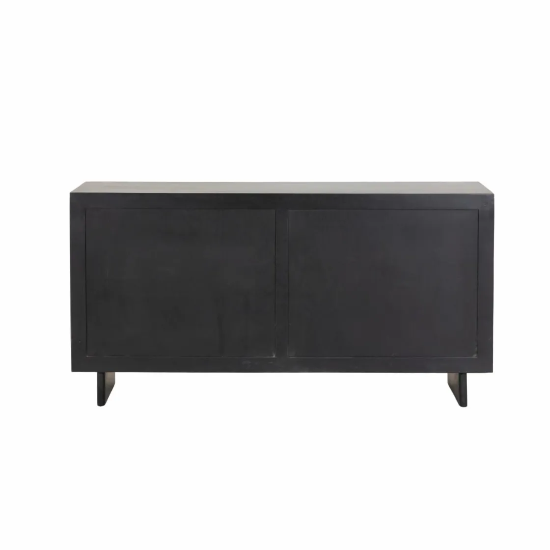 Fabriqué intégralement en bois de manguier massif, il combine robustesse, raffinement et caractère. Le veinage naturel du bois est sublimé par cette finition texturée qui évoque les ondulations de l’eau ou les motifs organiques du monde minéral. Derrière ses quatre portes battantes, il offre un grand volume de rangement parfaitement adapté à une salle à manger, un salon ou une entrée.