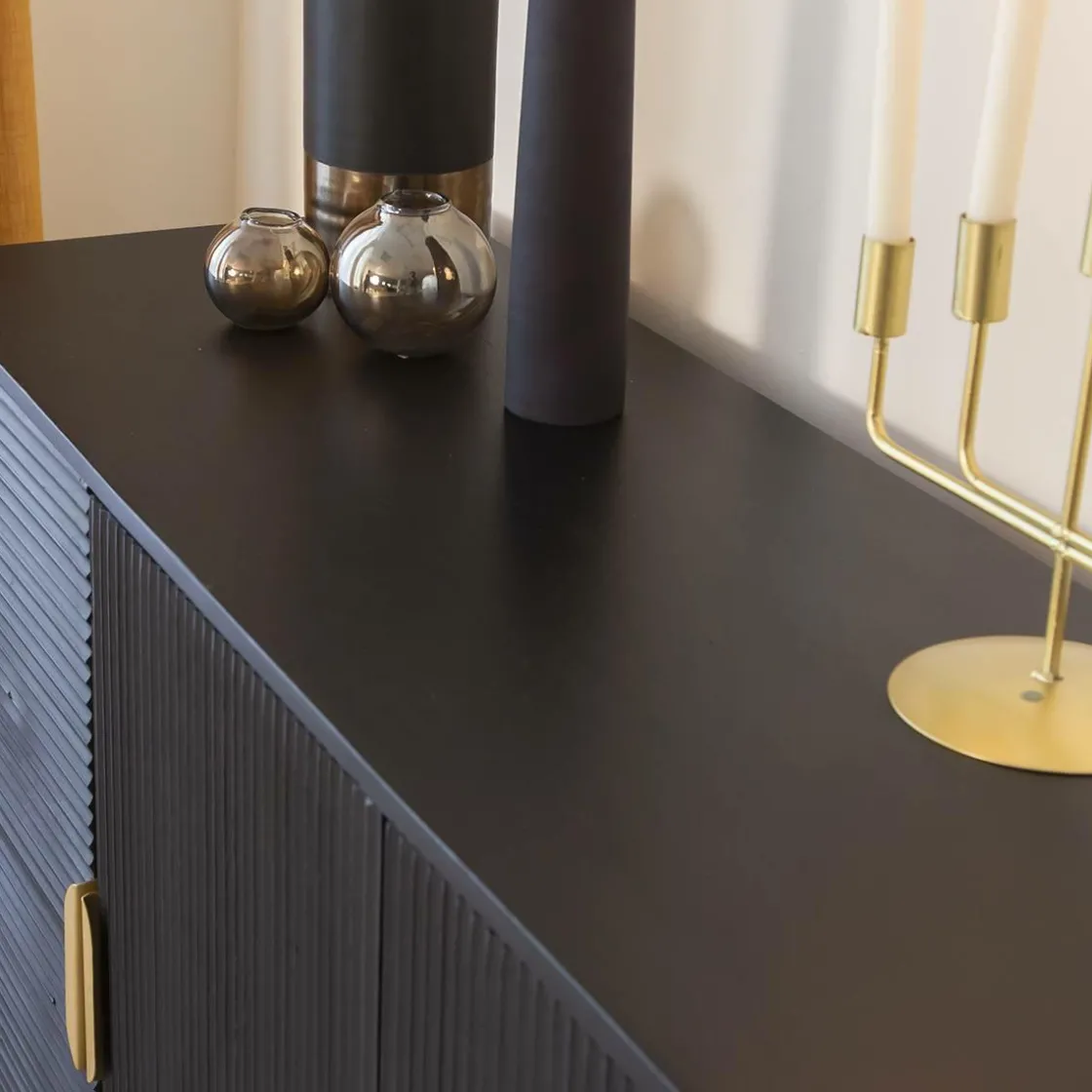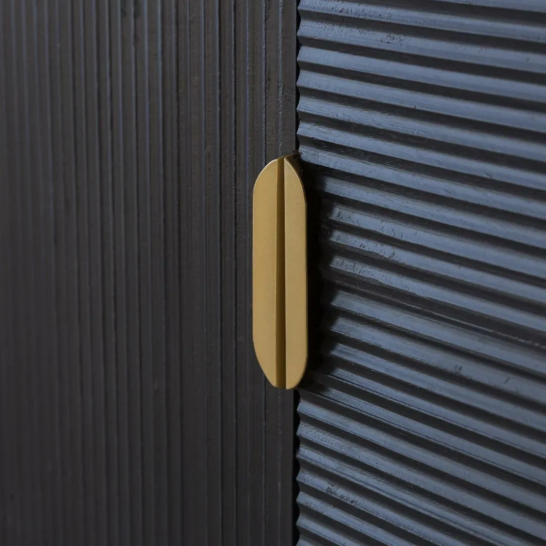 On imagine très bien ce buffet bois massif se fondre aussi bien dans une déco de style scandinave que bohème. Son design hors du commun vous permettra de viser dans le mille si vous souhaitez être au top de la tendance. Sa couleur dominante noire, amenée par le bois de manguier teinté, vient ajouter de la profondeur dans le meuble et dans votre intérieur. Vous pourrez facilement l’intégrer dans une ambiance claire et épurée afin de venir casser ce climat parfois trop blanc. Il possède des détails de couleur laiton, notamment sur les deux poignées, qui lui donnent une touche très chic.