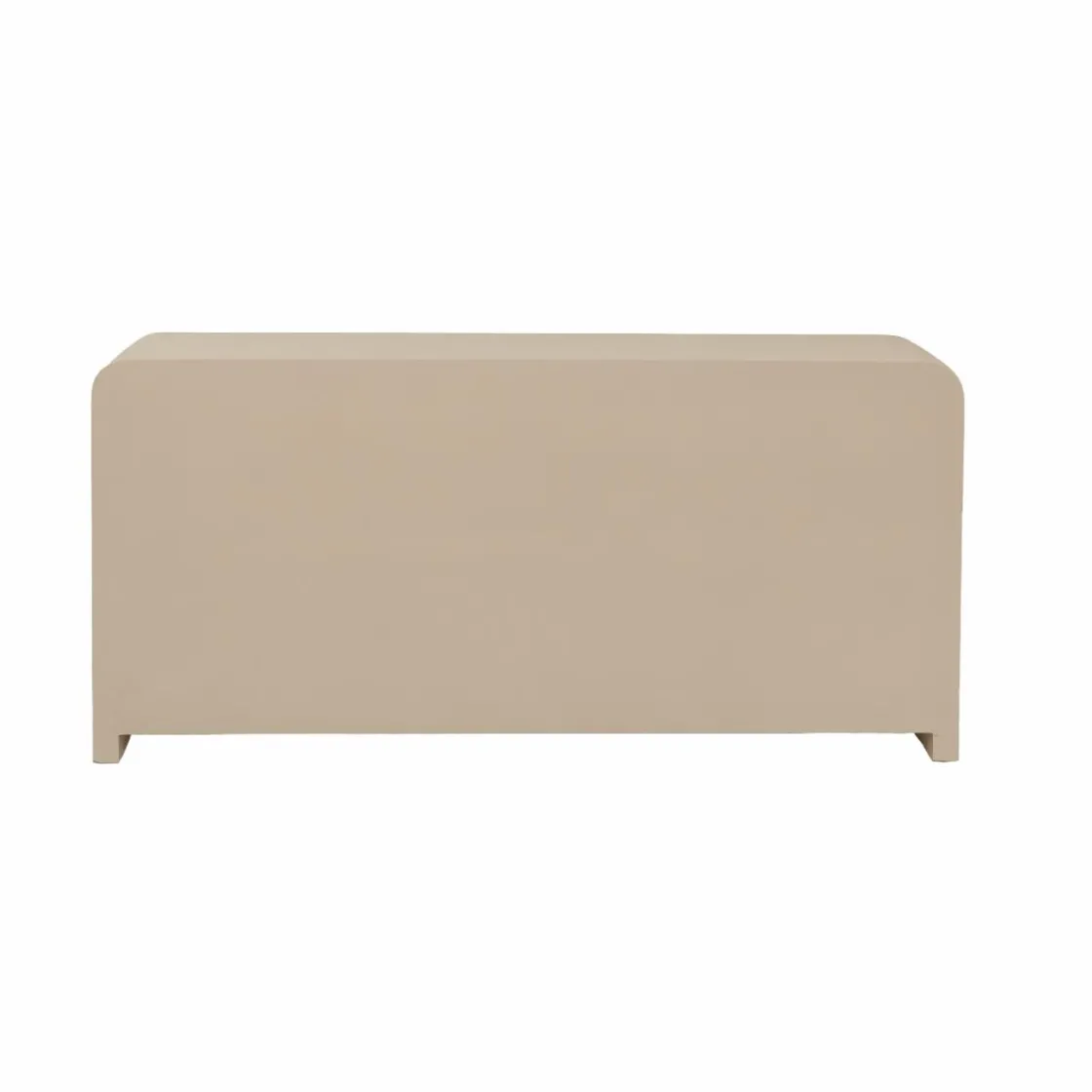 Les courbes arrondies donnent une sensation de douceur et d’élégance à ce meuble. Avec une hauteur de 75 cm, une largeur de 160 cm et une profondeur de 40 cm, il offre un espace généreux pour le rangement tout en étant compact et élégant.