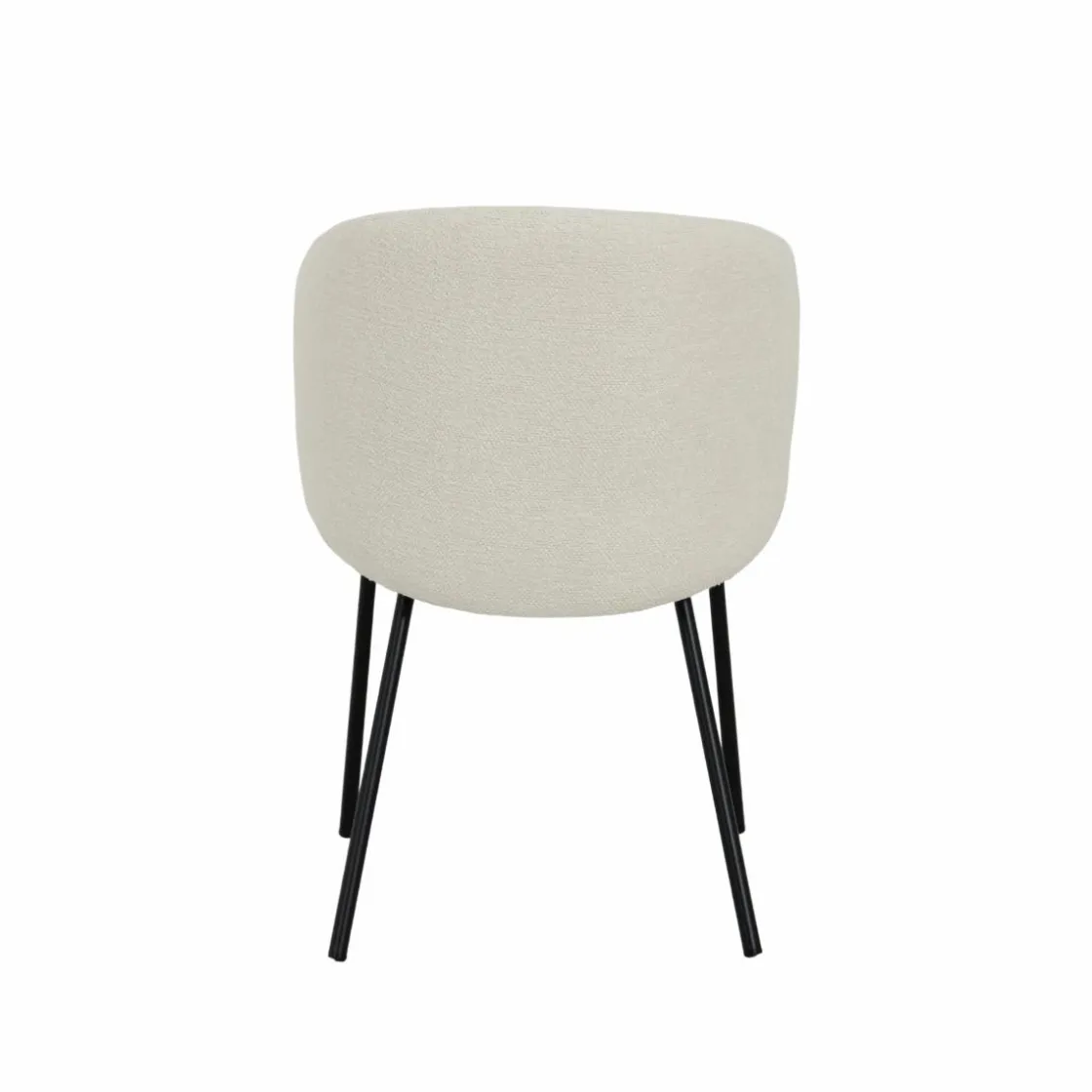 Cette chaise en tissu bouclette écru clair et pieds en métal incarne un style élégant et contemporain. Son revêtement doux et lumineux crée une atmosphère chaleureuse tout en s’accordant facilement avec différents univers déco. Le contraste entre le tissu beige et les pieds fins en métal noir lui confère une allure moderne et raffinée.