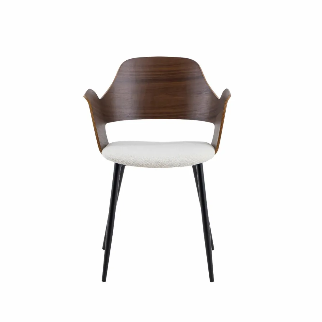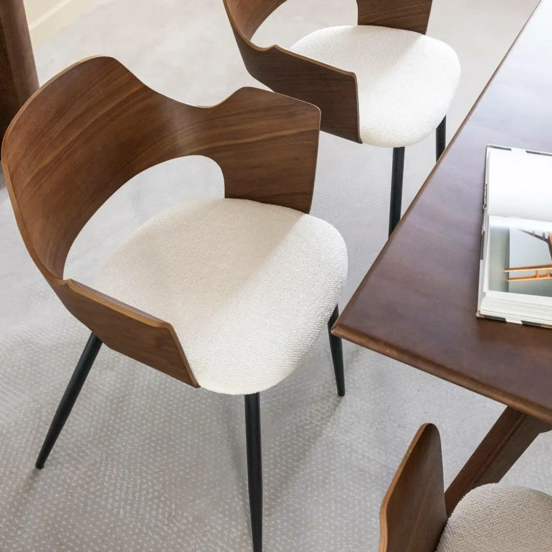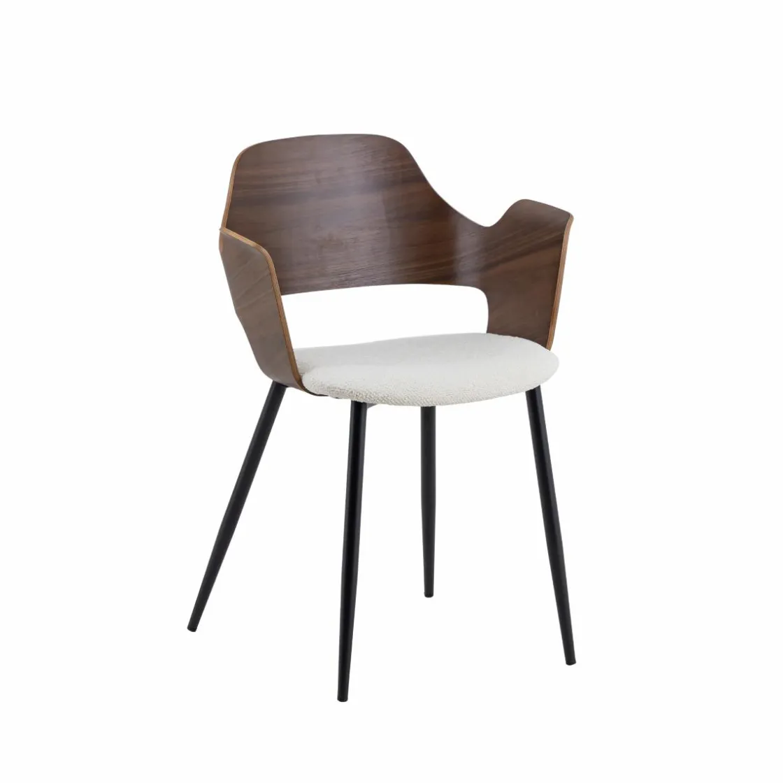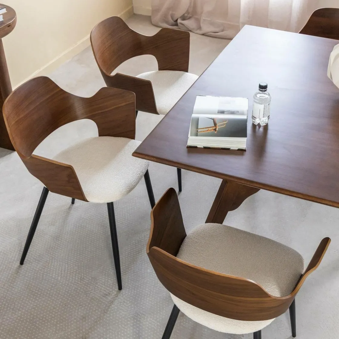 Cette chaise de la collection Florence se distingue par son caractère affirmé et son design élégant. Son dossier en bois triplex foncé apporte une touche sophistiquée et chaleureuse, créant un contraste subtil avec l’assise en tissu écru, à la fois douce et confortable. Ses accoudoirs intégrés renforcent son allure enveloppante et offrent une assise agréable au quotidien.