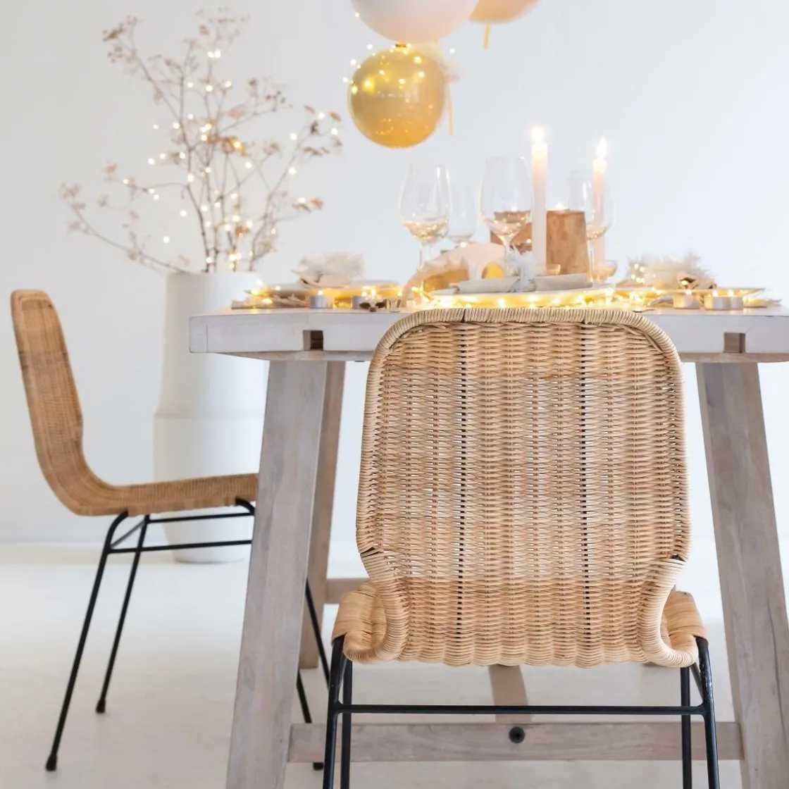 Découvrez la combinaison parfaite du style et du confort avec la chaise Minal ! Cette magnifique chaise de style bohème est fabriquée à partir d’une belle assise en rotin posée sur une structure en métal noir.