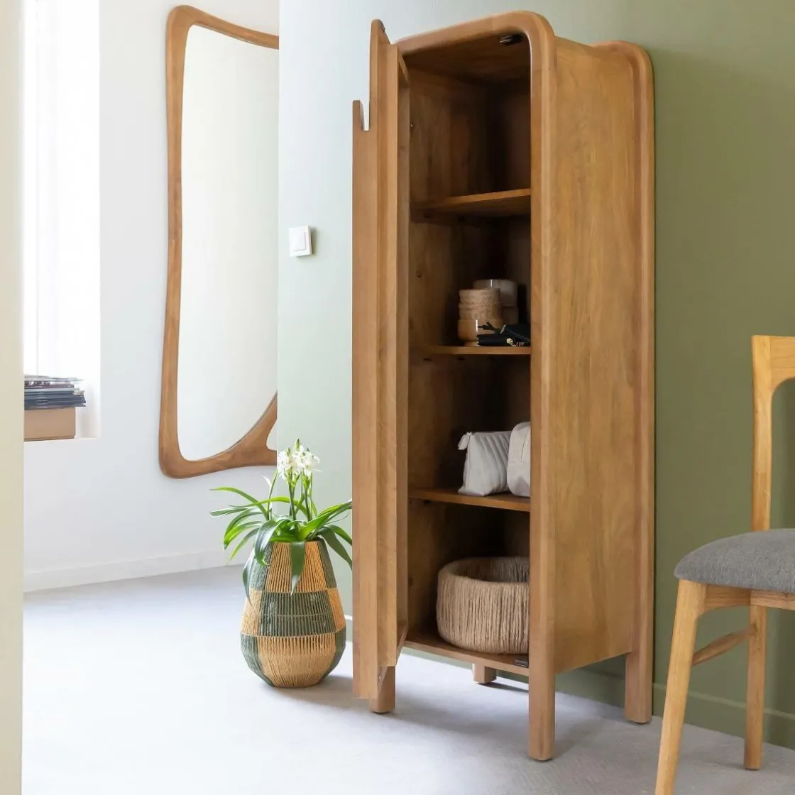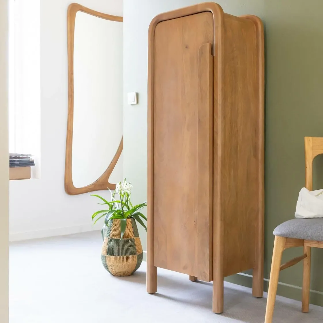 Avec sa silhouette élancée et sa forme toute en courbes, cette colonne en bois de manguier de la collection Féodor est la parfaite alliance entre design et praticité. Ses lignes douces, ses bords arrondis et sa poignée sculptée dans la façade offrent un style organique, chaleureux et résolument contemporain. Le bois de manguier, noble et lumineux, apporte un charme naturel à cette pièce singulière.