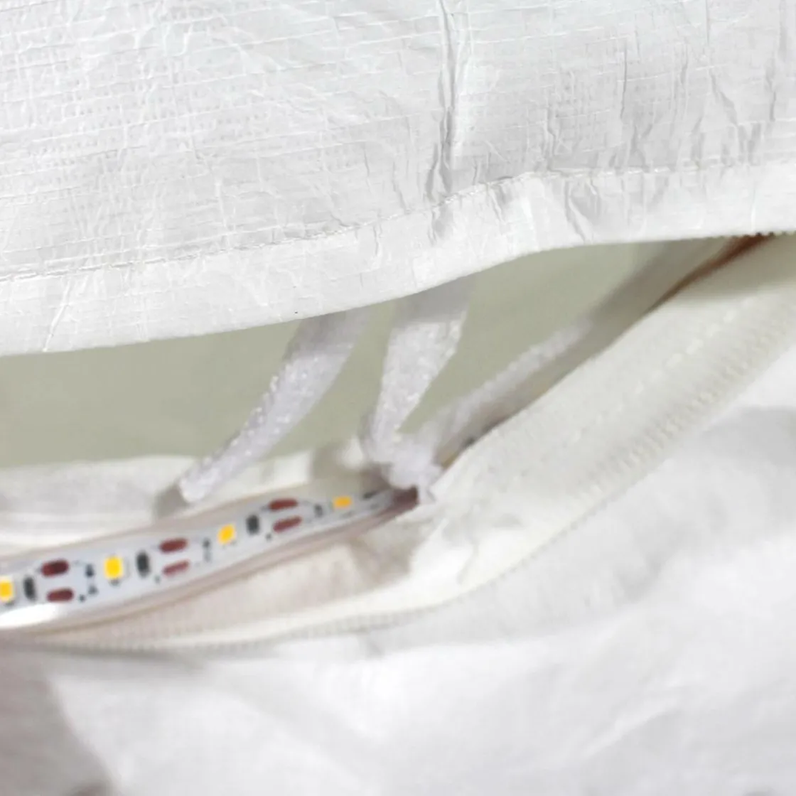 Vendu en kit, il est à monter soi même. Vous recevrez la structure en tissu, des sachets gonflables, ainsi qu’une pompe et des LED. De cette façon, il vous faudra remplir la structure en tissu de petits sachets gonflables afin de bomber votre assise. Puis de disposer les LED. Très simple et rapide.