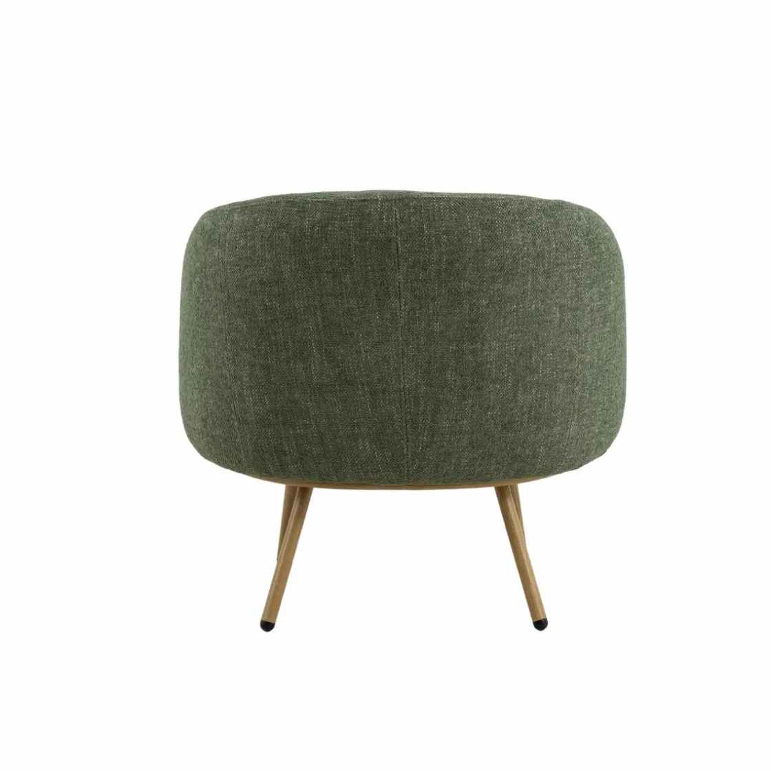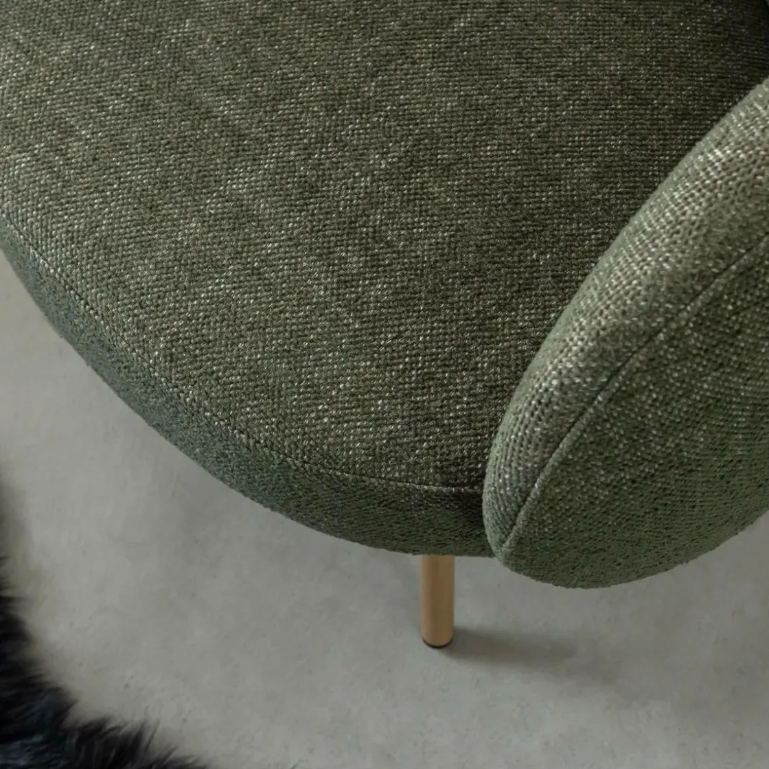 Ce fauteuil de la collection Kanoa allie confort et esthétisme avec un charme intemporel. Son revêtement en tissu vert, à la fois doux et raffiné, apporte une touche authentique et élégante qui s’intègre aussi bien dans un intérieur moderne que dans une ambiance plus cosy. Sa forme arrondie et accueillante invite à la détente et crée un véritable cocon de confort.
