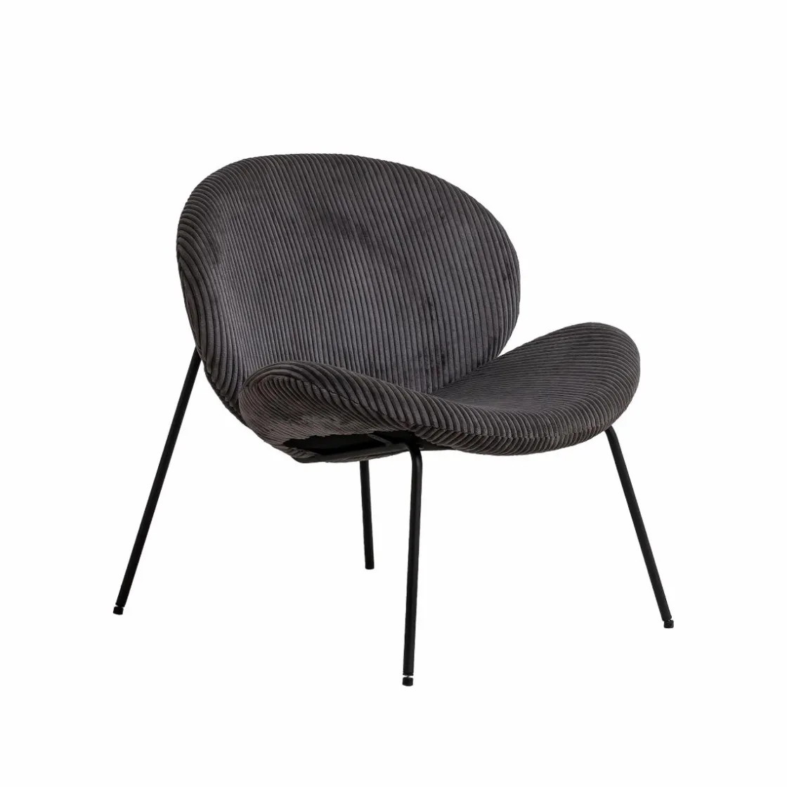 Sa structure en métal noir offre robustesse et modernité, tout en assurant une bonne stabilité. La forme ovale courbée de l’assise et du dossier permet un confort optimal. Ce fauteuil est particulièrement tendance avec sa texture en velours, un choix stylistique fort pour cette année.