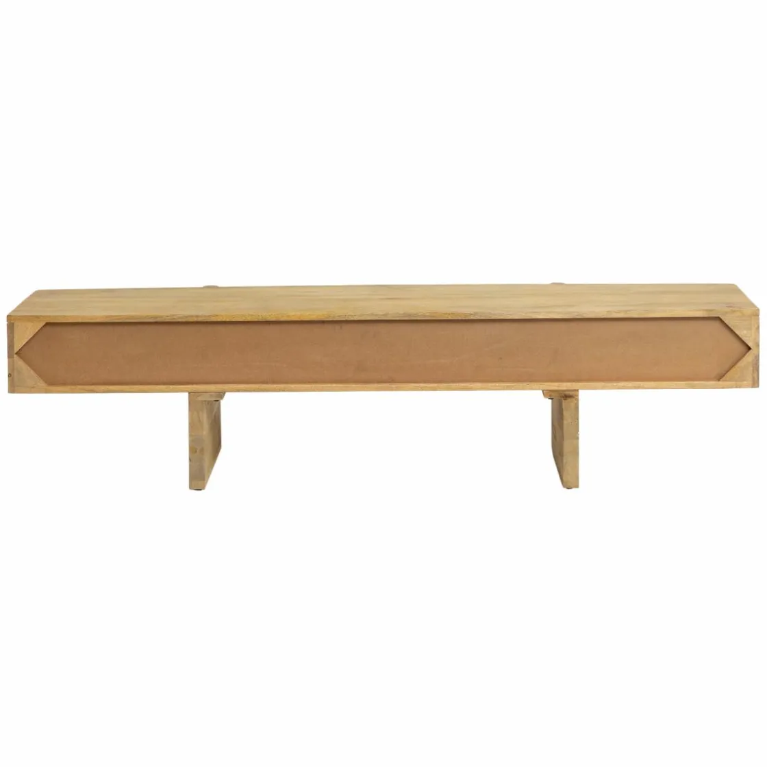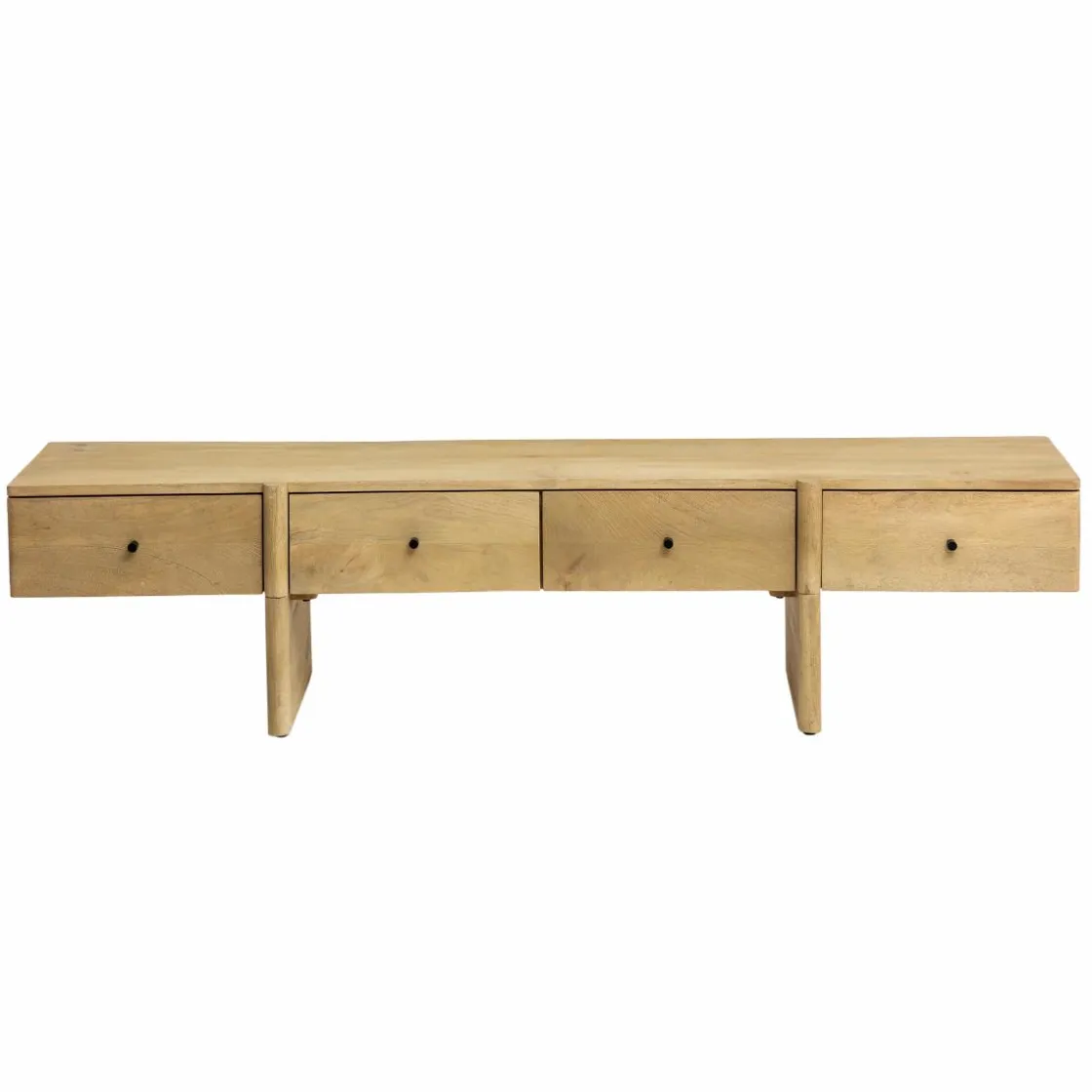Le meuble TV Amara en bois de manguier allie design et fonctionnalité.