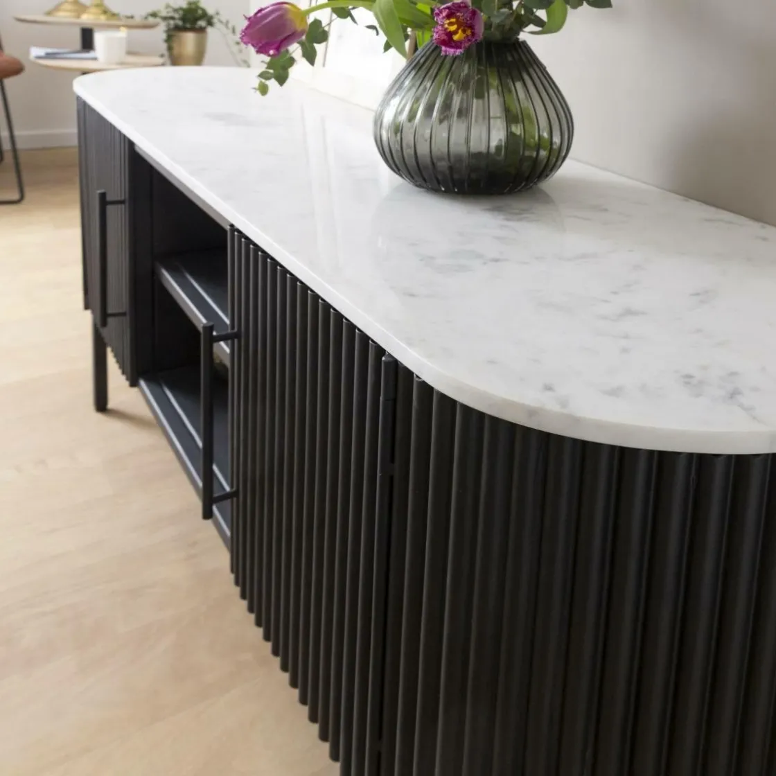 A savoir : Le marbre est une matière naturelle qui contient une diversité de minéraux, créant ainsi des variations de couleurs uniques pour chaque meuble. La présence des veines, leur forme et leur couleur peuvent donc différer d’une pierre à l’autre.