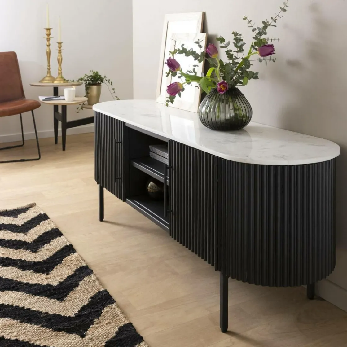 Lorsqu’il s’agit d’aménager un salon, le choix des meubles est primordial. Prenez le temps de trouver le meuble TV idéal, alliant praticité, fonctionnalité et esthétique. Notre meuble TV « Mona » répond à tous ces critères avec son design en métal noir et son plateau en marbre blanc.