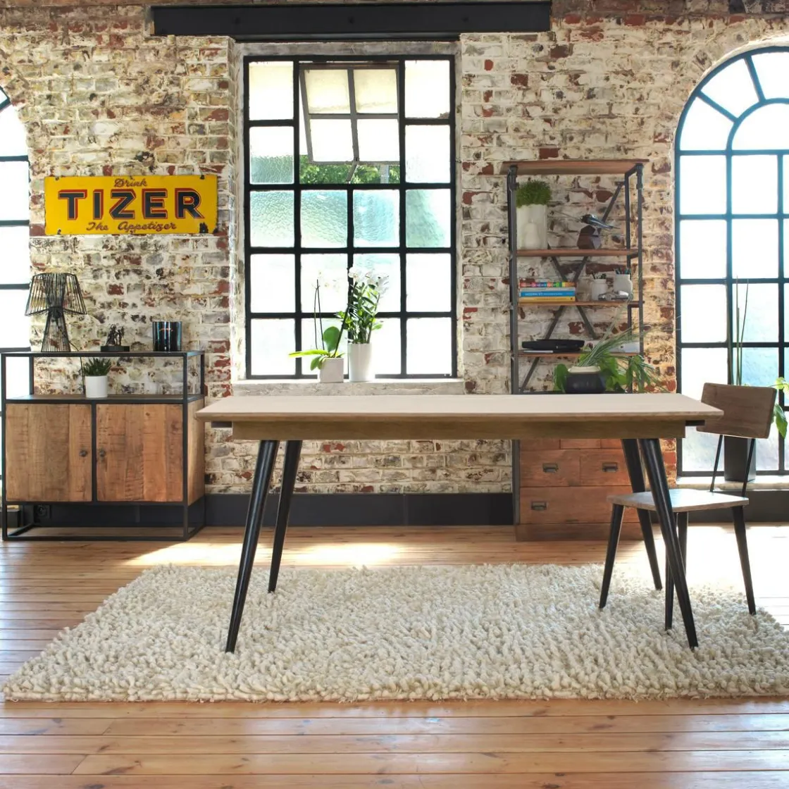 On n’hésite pas à l’accompagner de chaises en velours pour un rendu scandinave, ou encore de chaise en cuir roux pour un effet plus industriel ! Le bois de manguier est un bois très résistant qui vous apportera robustesse et résistance !