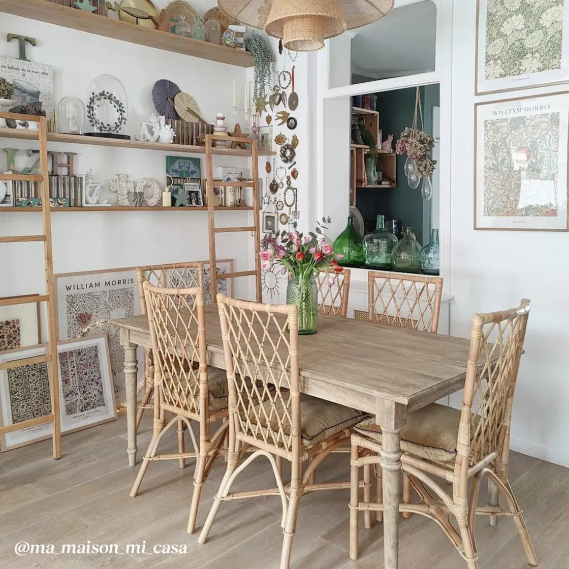 Les nuances claires et lumineuses qui se dégagent du bois de cette table à manger en bois massif et cet aspect brut amènent une touche de caractère à l’ensemble du meuble. Son design rustique et raffiné à la fois trouvera facilement sa place dans votre intérieur.