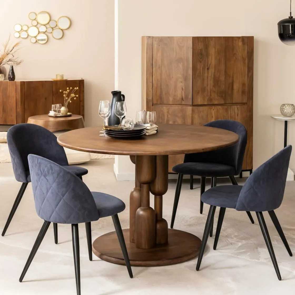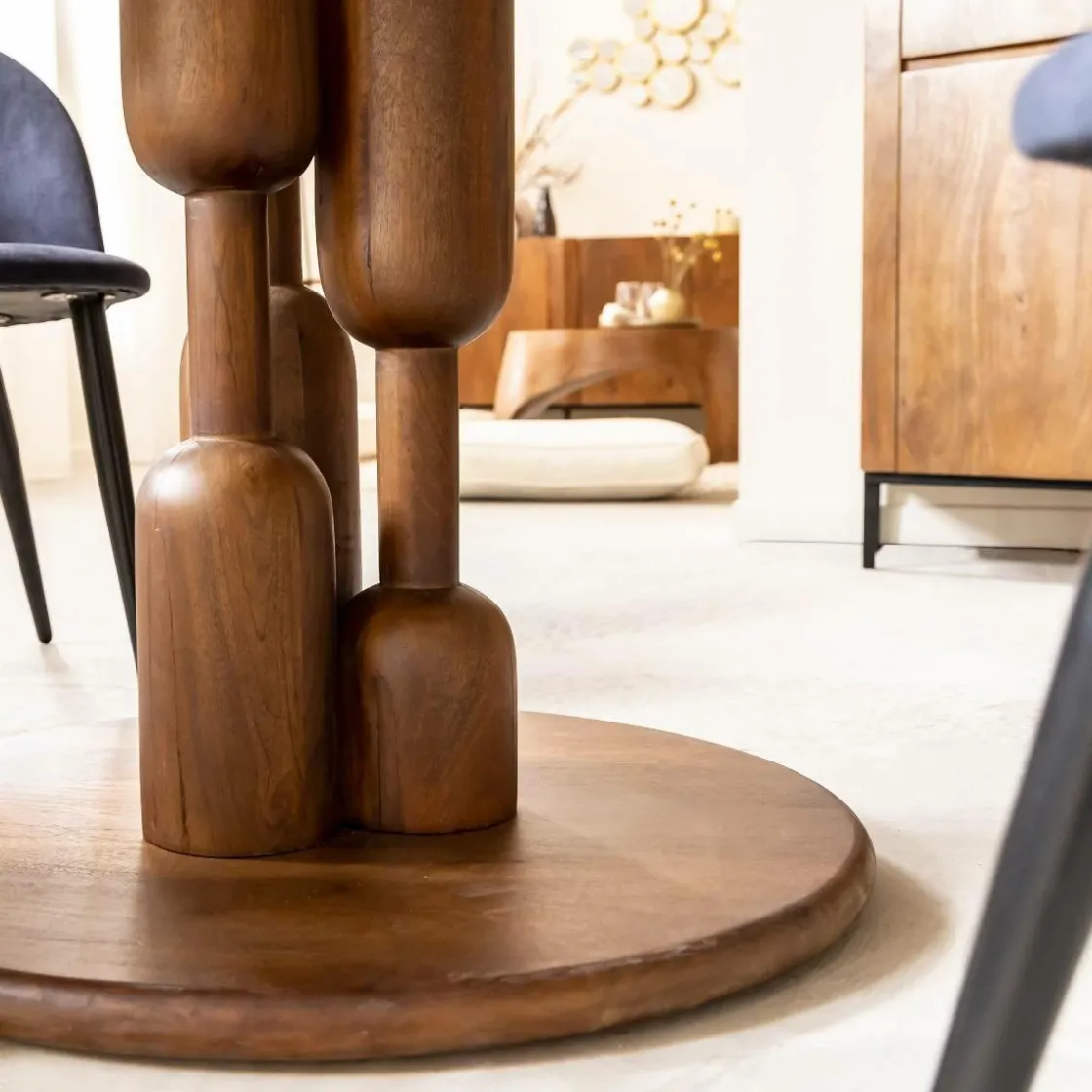 La Table à manger ronde en bois de manguier Zola ajoute une touche de sophistication contemporaine à votre salle à manger. Sa surface en bois de manguier, robuste et naturelle, confère à cette pièce une chaleur et une authenticité inégalées.