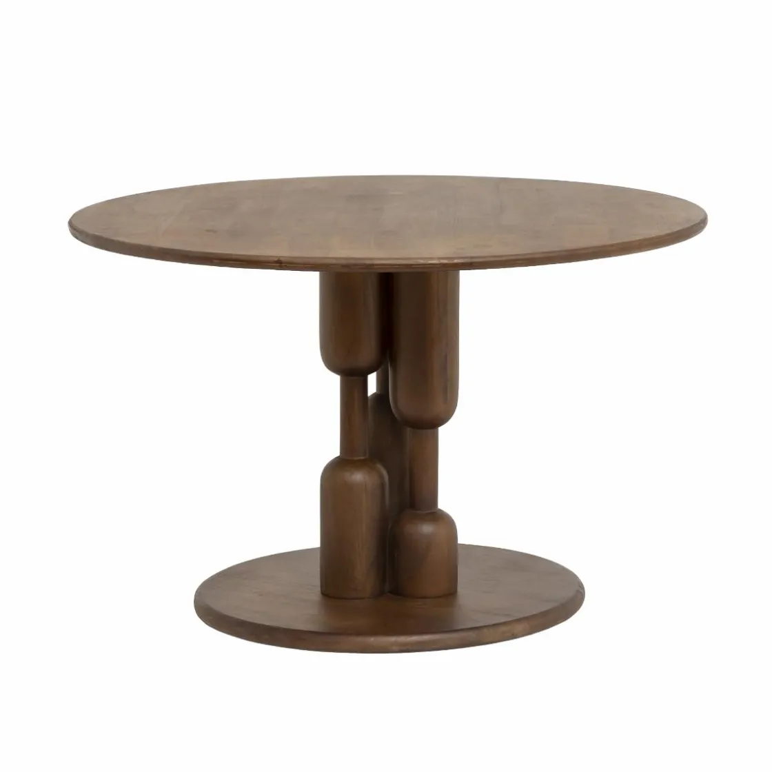Avec un plateau rond en bois foncé de 120cm de diamètre et une hauteur de 77cm, cette table offre un espace généreux pour accueillir confortablement jusqu’à six personnes. Idéale pour les repas en famille ou entre amis, elle combine élégance et fonctionnalité.