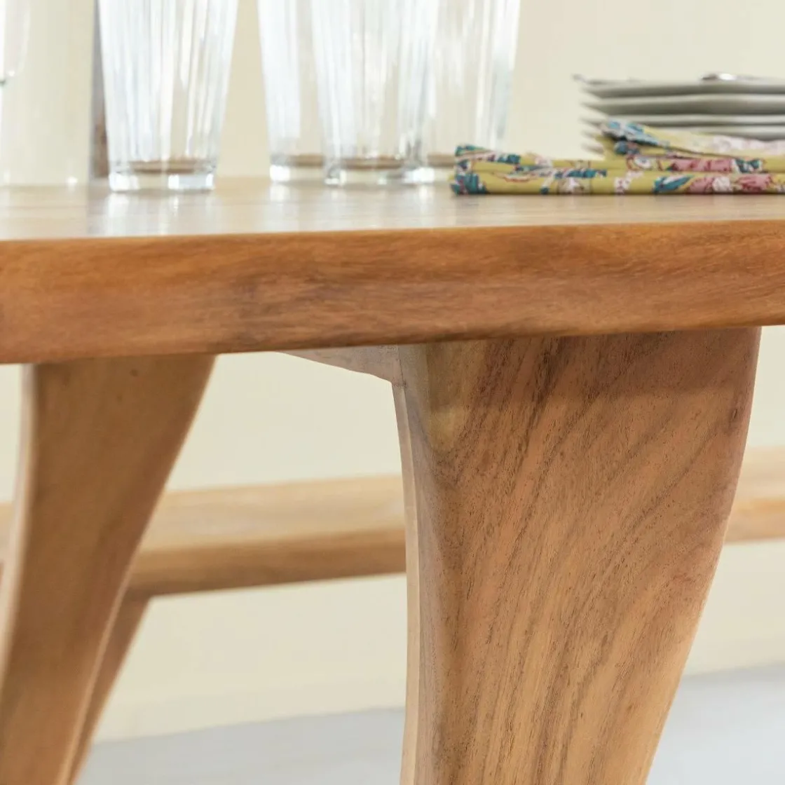 Sa structure robuste et son piétement singulier assurent stabilité et élégance. Que ce soit dans une cuisine ouverte ou une salle à manger moderne, cette table devient un point central de votre décoration. Elle peut accueillir confortablement 6 à 8 personnes, tout en conservant un esprit épuré.