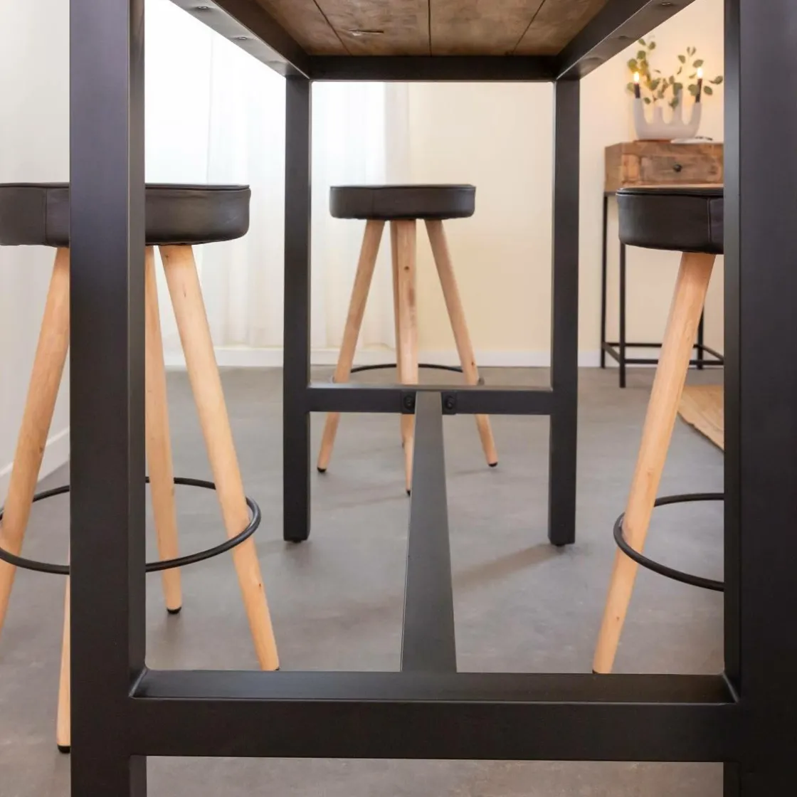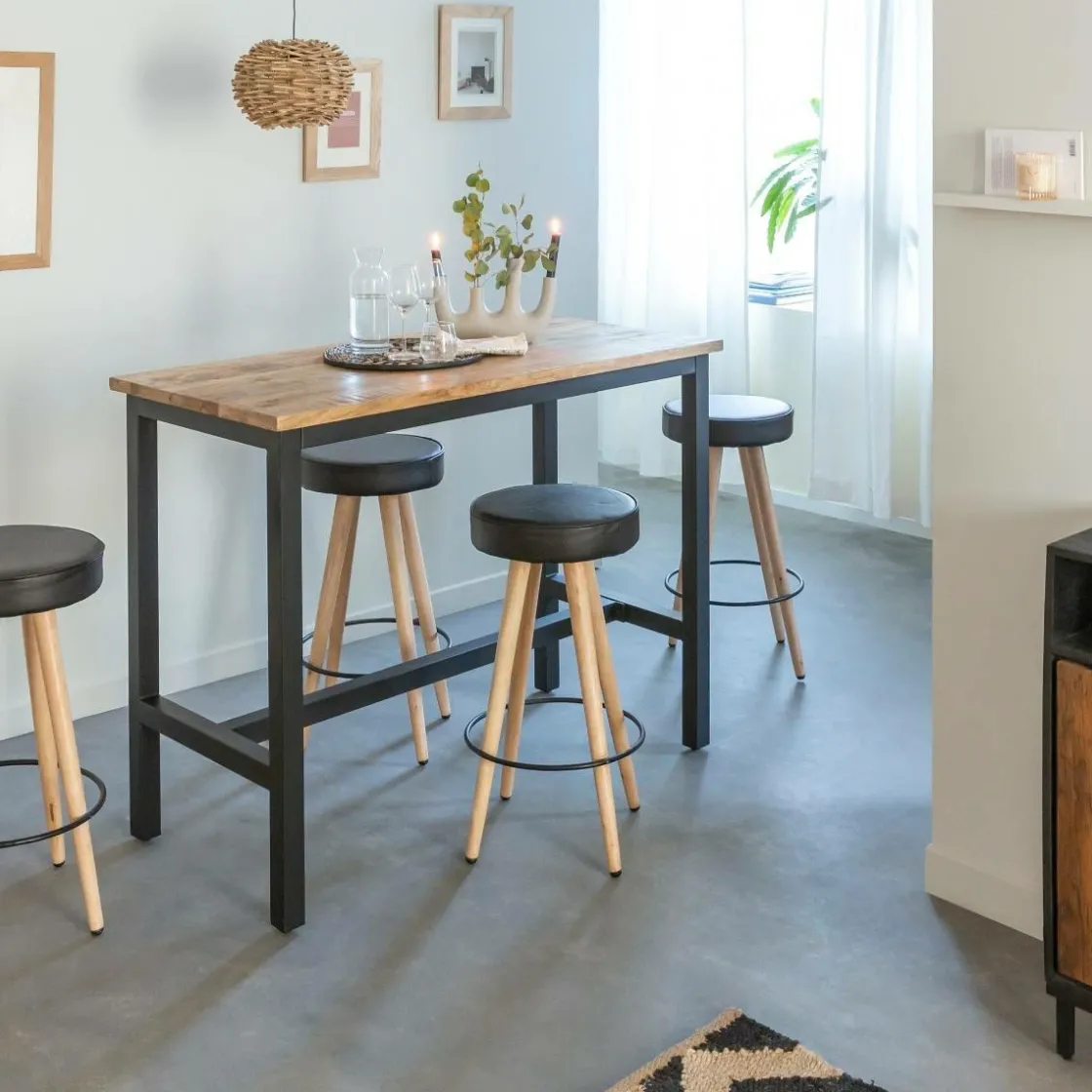 Cette table haute est idéale pour rassembler famille et amis de façon conviviale. L’association entre le bois et le métal est une valeur sûre qui profitera entièrement à votre pièce !