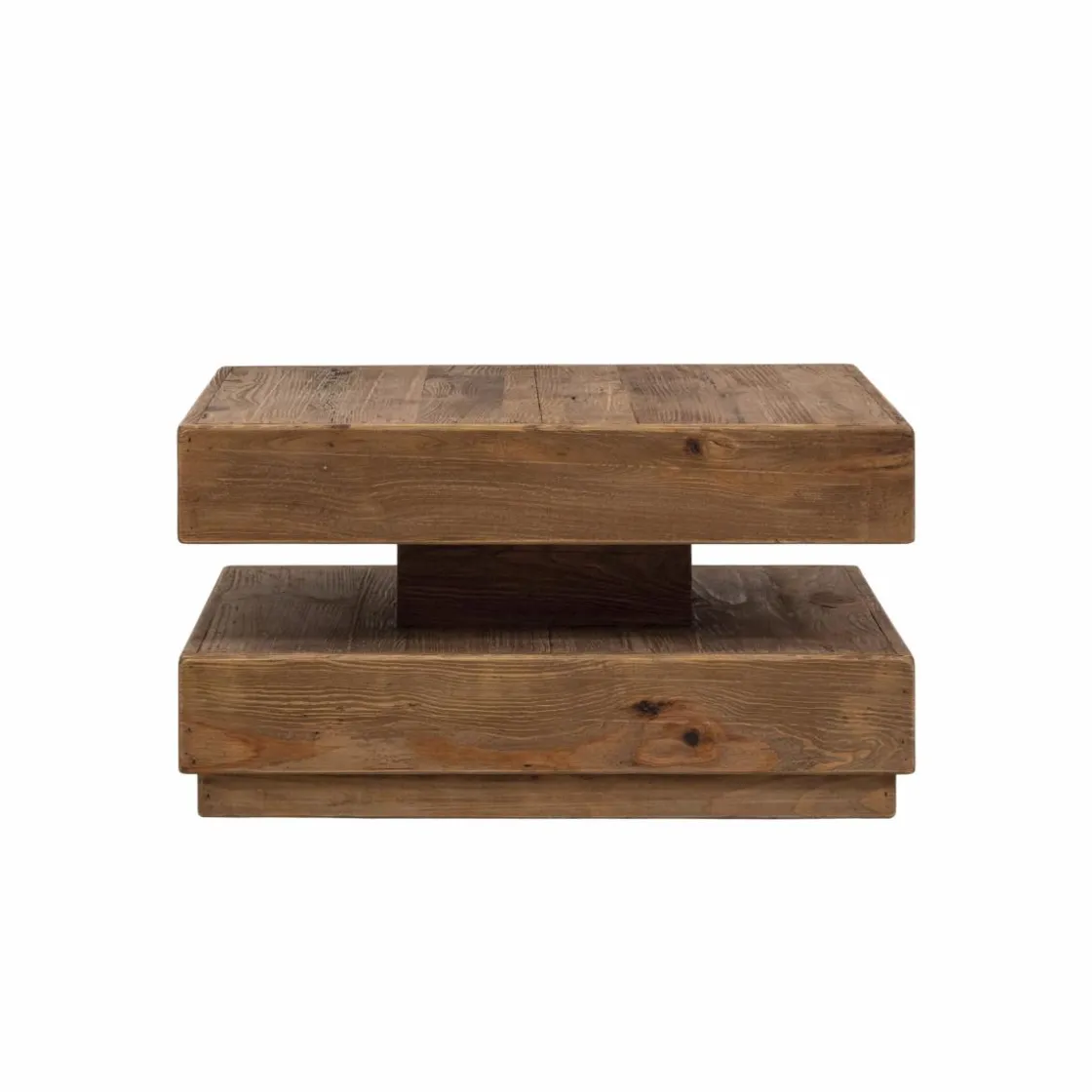 Cette table basse de la collection Blaise est une pièce de caractère qui mise sur la force du bois recyclé pour créer une ambiance authentique et chaleureuse. Son design sculptural, composé de deux plateaux massifs reliés par un socle central, lui offre une silhouette graphique et résolument contemporaine. Chaque élément de ce meuble met en valeur les marques naturelles du bois recyclé : nœuds, veines apparentes, irrégularités et nuances uniques qui racontent l’histoire de la matière.