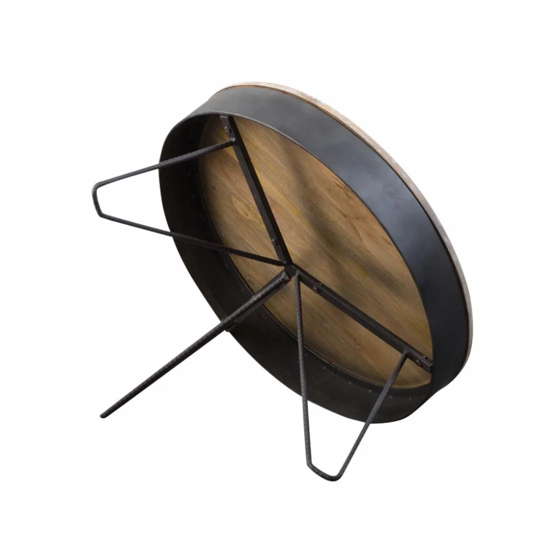 Cette table basse industrielle doit ses nuances claires et lumineuses à son bois exotique. On aime le rendu harmonieux entre le plateau en manguier blanchi et le cerclage marqué en métal gris qui l’entoure. A cela, est ajouté un piétement compas en métal doté d’une finition très raffinée. L’ensemble en fait une table coup de cœur !