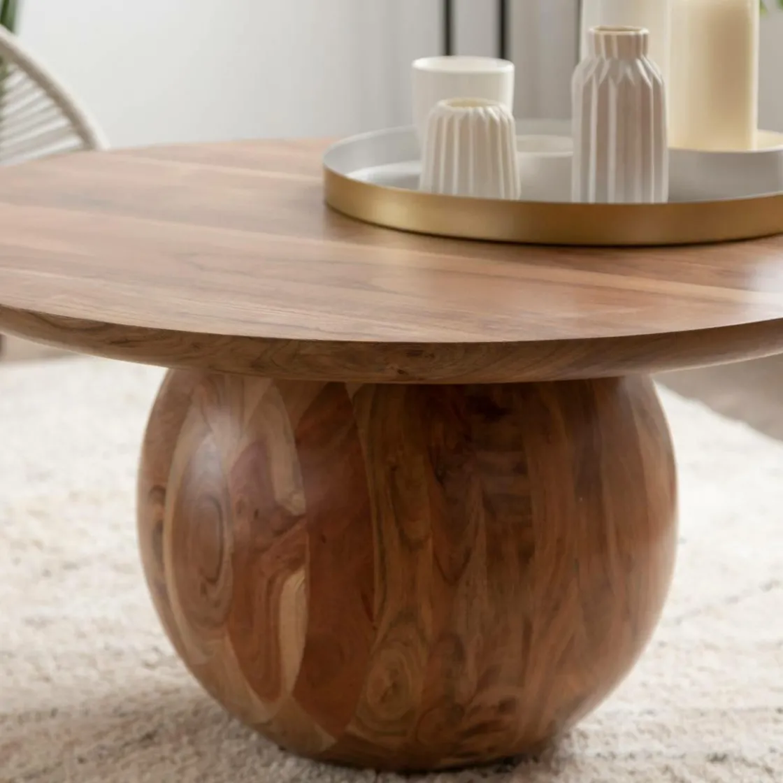 Voici la table Charlou, une table basse élégante avec son petit plus : son pied en forme de boule, dont la qualité se retrouve dans chaque détail.