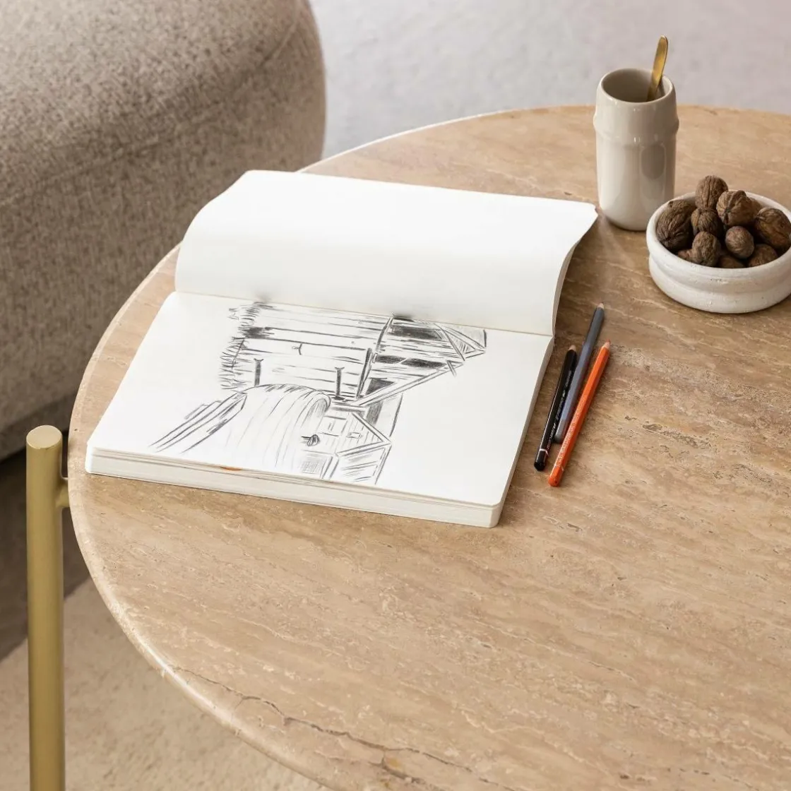 Élégante et aérienne, cette table basse ronde Cerys conjugue raffinement et légèreté grâce à l’alliance du marbre naturel et du métal doré. Son design minimaliste met en valeur la noblesse des matériaux tout en apportant une touche glamour et contemporaine à votre intérieur.