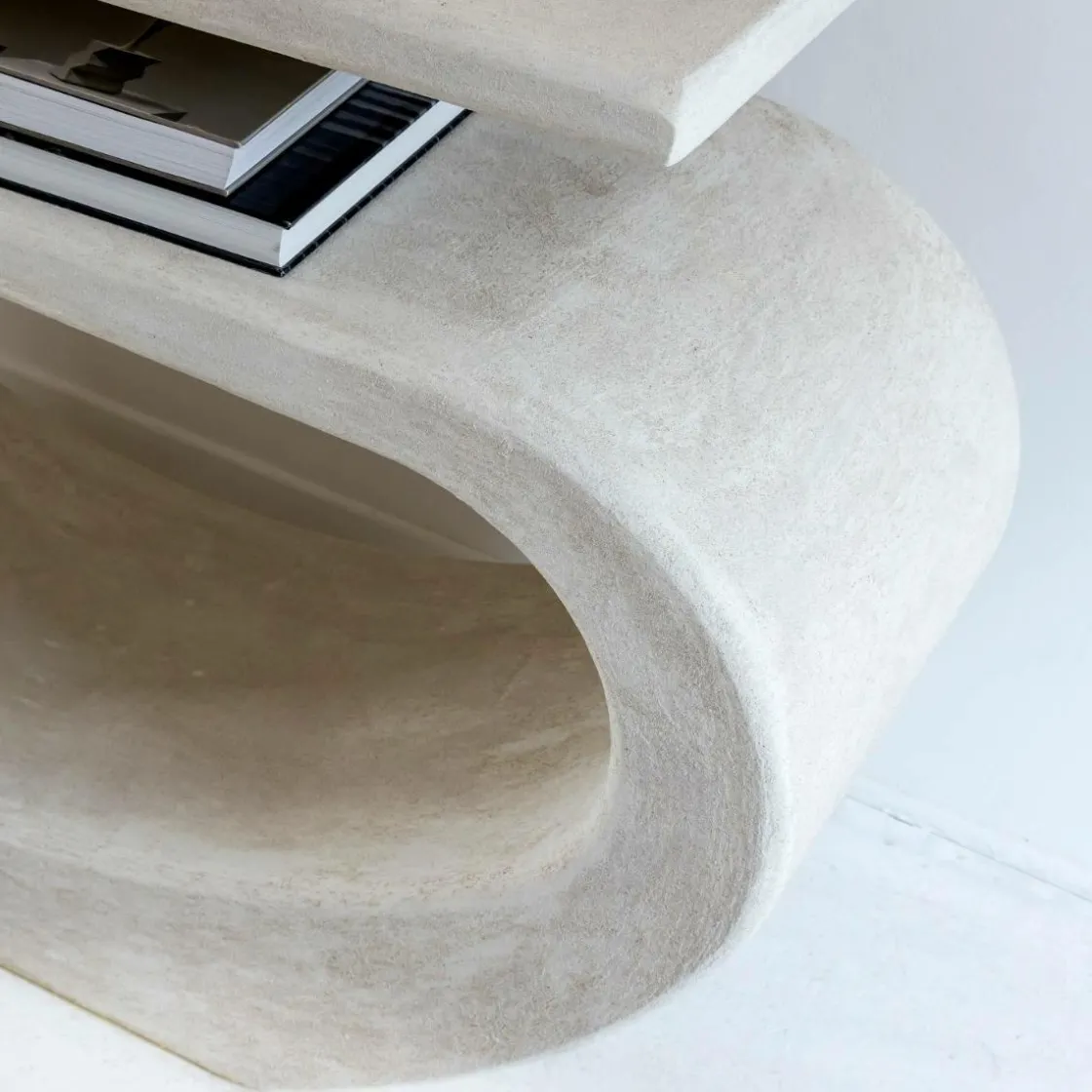 Cette console sculpturale de la collection Danaé séduit par sa forme audacieuse et ultra contemporaine. Son design enroulé en un G stylisé donne une impression de mouvement figé, presque architecturale. Fabriquée en MDF avec une finition blanche mate, elle conjugue légèreté visuelle et stabilité.