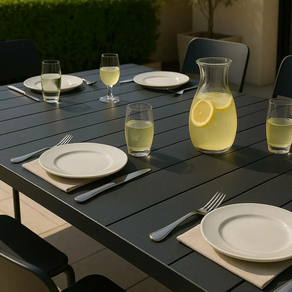 Que ce soit pour un déjeuner ensoleillé, un dîner en famille ou un apéritif entre amis, la table Kaïa extensible combine parfaitement design, robustesse et fonctionnalité, faisant d’elle un incontournable pour profiter pleinement de votre espace extérieur.
