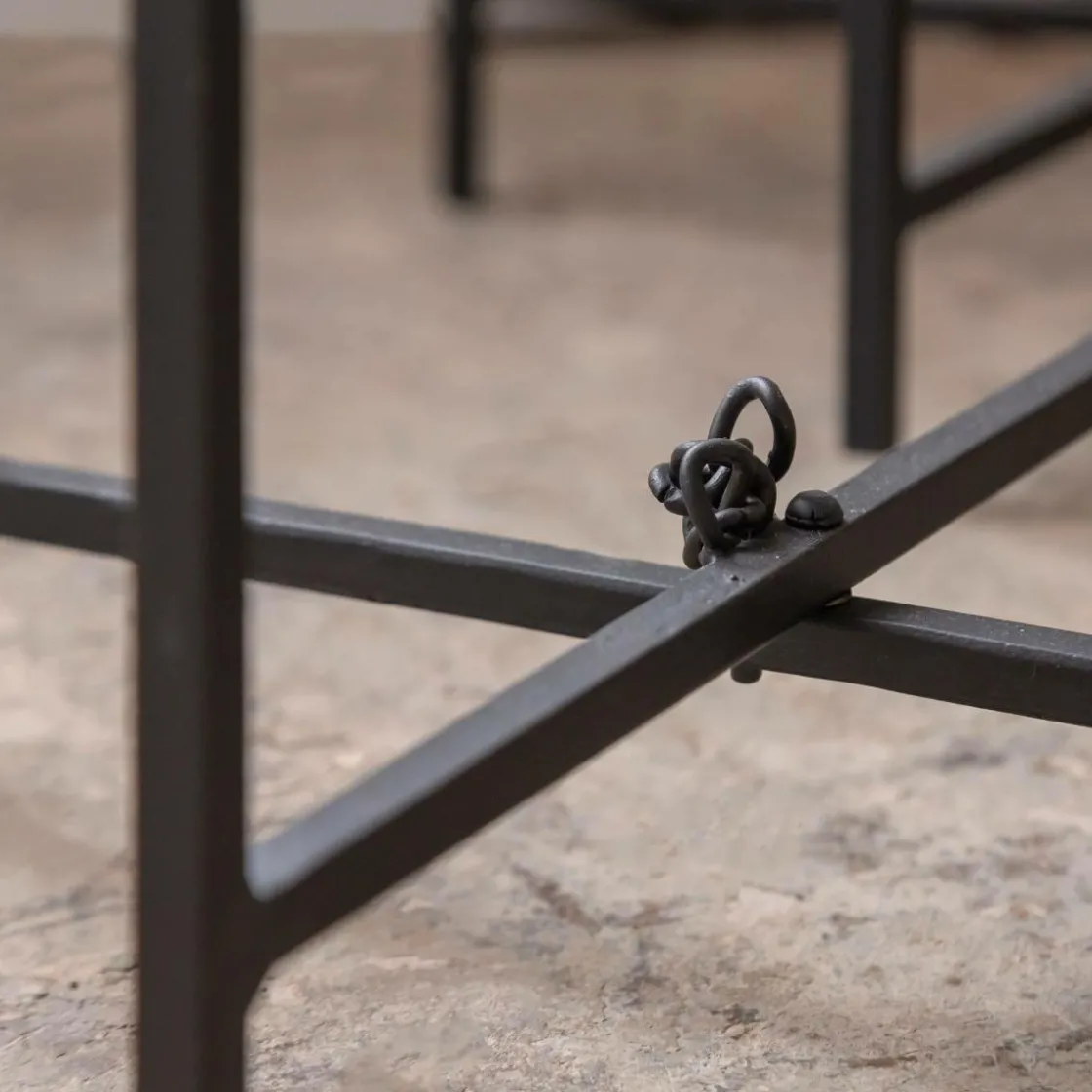 Le plateau rond en verre repose majestueusement sur le pied en métal noir, créant une silhouette élégante et sophistiquée qui est à la fois accrocheuse et intemporelle. Il est facile de comprendre pourquoi cet ensemble de table est la combinaison parfaite du style et de la solidité.