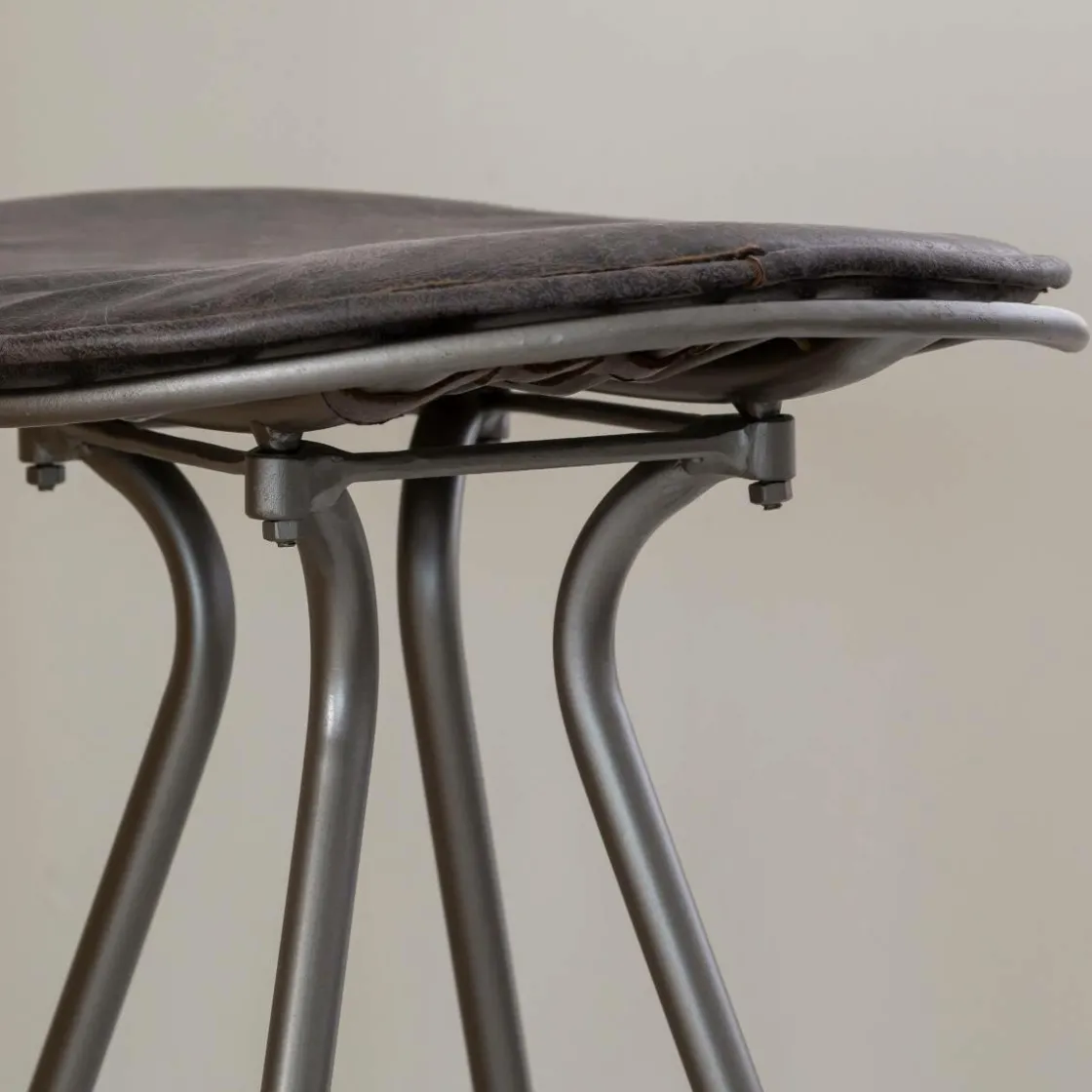 Fabriqué en métal robuste avec une silhouette élégante et courbée, le design unique est à la fois stylé et intemporel. L’assise ronde est luxueusement recouverte de cuir gris souple pour une touche de modernité supplémentaire et un confort inégalé. D’une hauteur de 81 cm et d’une largeur de 50 cm, ce tabouret de bar est la pièce maîtresse d’une cuisine ou d’une salle à manger contemporaine. Il sera également parfait comme chaise d’appoint autour d’un bar de petit-déjeuner ou dans n’importe quelle autre pièce de votre maison.